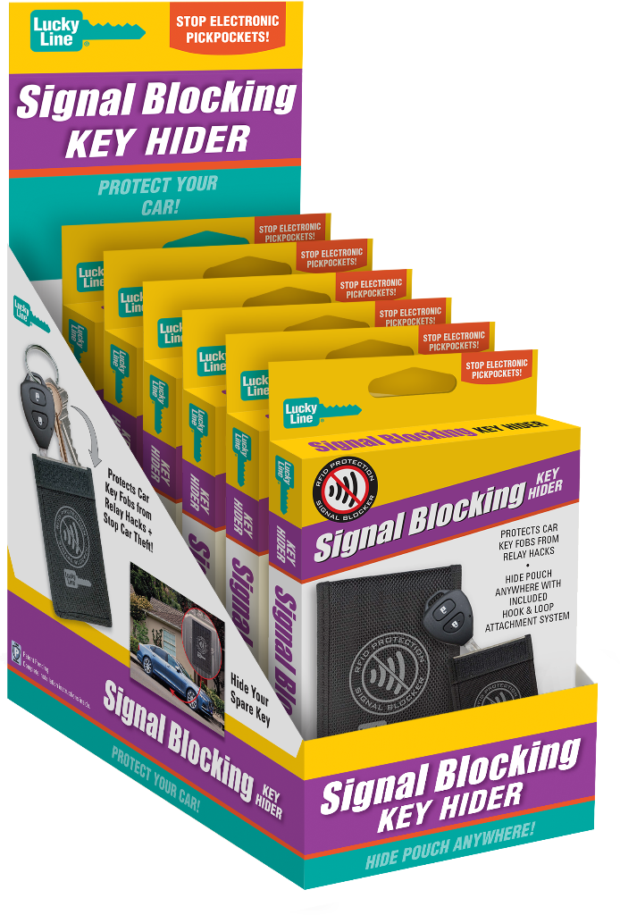 Lucky Line Products 91800 Signal Blocking Key Hider 12/Display Box offers an innovative solution for securely storing your keys while blocking unauthorized signals. This updated key hider features an expanded pouch, designed to accommodate today’s larger key fobs effortlessly, ensuring that your essential keys are always within reach yet safely concealed. The display box holds 12 signal blocking key hiders, making it ideal for retail settings or personal use. Measuring 4 inches wide, 6-1/4 inches high, and 6-1/2 inches deep, it maintains a compact footprint while providing ample storage. Each key hider is individually UPC coded for precise sales and inventory tracking, simplifying the restocking process. Additionally, refills are available in multiples of 5, making it easier to manage your supplies and keep your display well-stocked. Perfect for both building professionals and knowledgeable homeowners, the Lucky Line Products 91800 is a smart investment in security accessories. With its practical design and reliable signal-blocking capabilities, this key hider helps protect your keys from potential theft, ensuring peace of mind wherever you go. Upgrade your key management system with this essential accessory today.