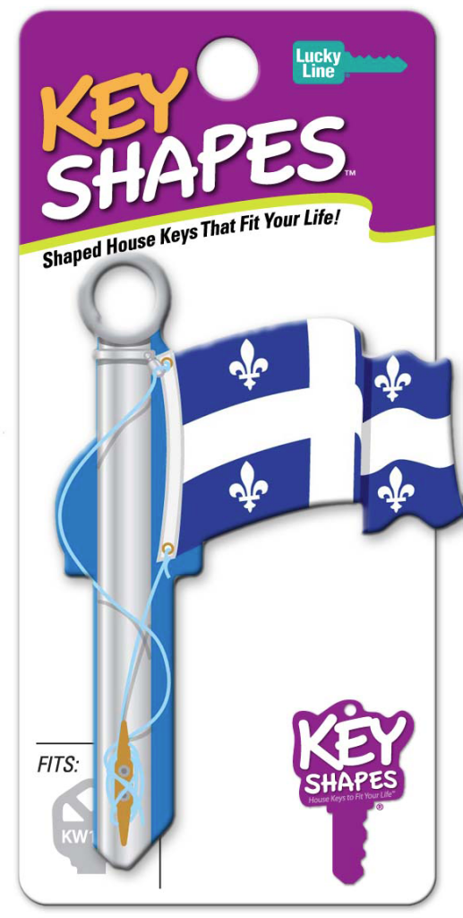 Lucky Line Products B129W-ISO + Key Shapes Quebec Flag WR3/5 showcases a vibrant representation of the Quebec flag, perfect for those looking to express their patriotic spirit. This key blank is crafted from the highest quality brass, ensuring durability and reliability for your locking needs. The bright, enamel-coated design features deep color saturation, making it resistant to scratching and fading, so you can proudly display your love for Quebec without worrying about wear over time. Manufactured and inspected under ISO 9001 certified processes, the B129W-ISO key meets stringent tolerances for quality and performance. The copyright-protected design ensures that you’re getting a unique product that stands out from ordinary keys. This versatile key blank is compatible with popular keyways, including Kwikset KWI/11, Schlage SC1, and Weiser WR5/WR3, making it an excellent choice for various locking systems. Whether you're a building professional looking to offer clients something special or a homeowner wanting to add a personal touch to your keys, the Lucky Line Products B129W-ISO is an ideal solution. With its eye-catching design and robust construction, this key blank is more than just a functional item; it’s a statement piece that reflects your identity and values.