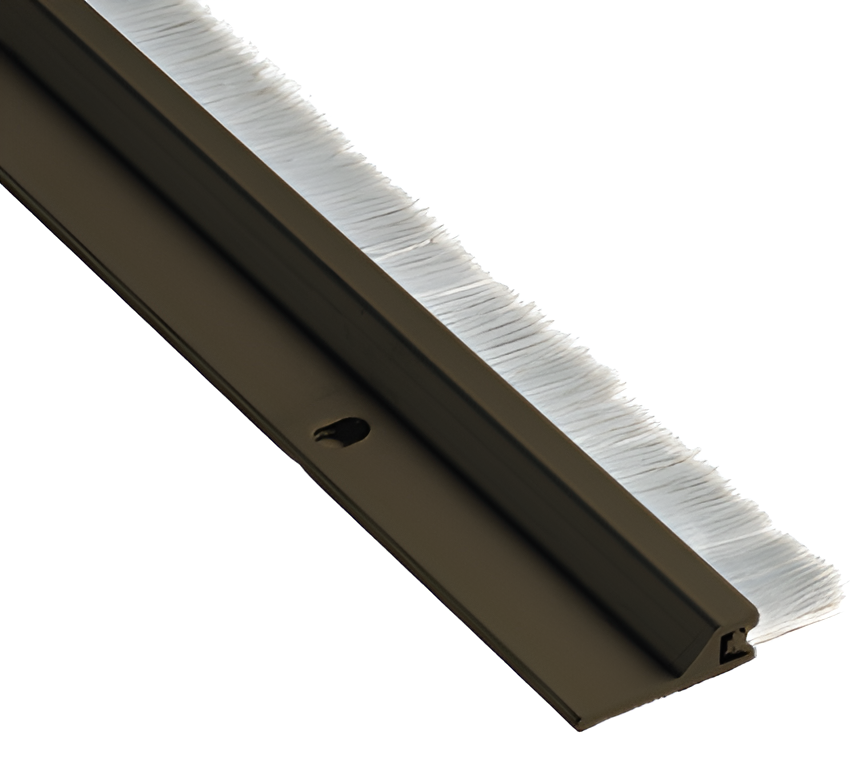 National Guard Products Inc NGP 600DKB 84IN 1/2in Gray Nylon Brush Sweep is expertly designed for superior sealing performance in various door applications. Crafted from aluminum alloy 6063 in T5 temper, this durable product features a dark bronze anodized finish that enhances its aesthetic appeal while providing robust protection against wear. The nylon brush, rendered in black, offers excellent abrasion resistance, flexibility, and memory, making it a reliable choice for maintaining door integrity. With a remarkable temperature range of -70°F to 425°F, this brush sweep is moisture-resistant and effectively retains insecticides, contributing to a healthier environment. However, it is important to note that it is not designed to prevent water penetration. This product comes complete with six #6 x 3/4" stainless steel sheet metal screws, which are slotted for easy adjustment during installation. The NGP 600DKB is also REACH and RoHS compliant, ensuring it meets stringent safety and environmental standards. Suitable for both residential and commercial applications, it is certified fire-rated for up to 180 minutes, providing peace of mind in emergency situations. Choose the National Guard Products Inc NGP 600DKB 84IN for a reliable, effective solution to your door sealing needs.