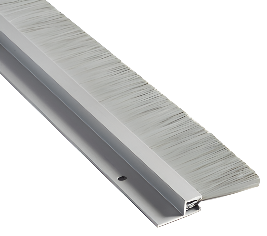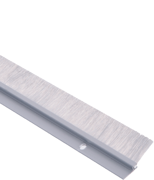 National Guard Products Inc OV633A 36IN 1in Gray Nylon Brush Sweep is engineered for optimal performance in various door applications, particularly thresholds and seals. Constructed from durable aluminum alloy 6063 in T5 temper and complemented by a synthetic polyamide nylon brush, this product offers exceptional abrasion resistance and flexibility. It effectively retains insecticides, making it a practical choice for maintaining a pest-free environment. With a height of 1-5/8 inches and a moisture-resistant design, the OV633A withstands extreme temperatures ranging from -70°F to 425°F, ensuring reliable functionality in diverse climates. Installation is straightforward, as it comes with #6 x 3/4" stainless steel sheet metal screws, and the slotted screw holes allow for easy adjustment during setup. This product is not designed to prevent water penetration, but its compliance with REACH and RoHS standards guarantees a commitment to safety and environmental responsibility. Additionally, the anodized aluminum finish in clear adds an appealing aesthetic to your door hardware. For customization, options include a fast attach tape (FATT) feature and a black brush variant (-BB). The OV633A is certified fire-rated for 180 minutes and 90 minutes, making it a reliable choice for building professionals and discerning homeowners alike.