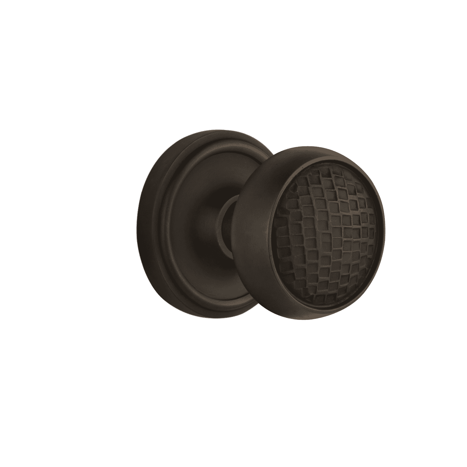 Classic Rosette with Craftsman Knob in Oil-Rubbed Bronze. Double Dummy, Universal Door Handing