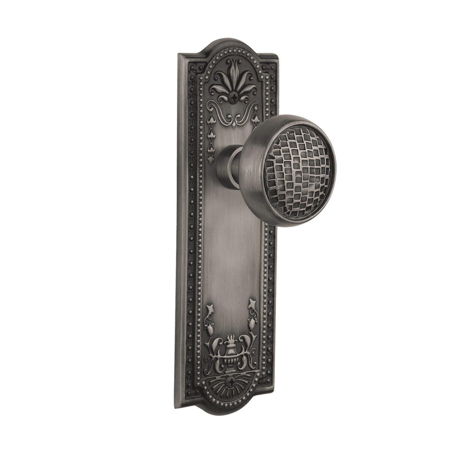Nostalgic Warehouse 716487 Meadows Long Plate with Craftsman Knob in Antique Pewter embodies timeless elegance with its intricate beaded detailing and botanical flourishes. This stunning design creates a distinctive hand-crafted look that adds character to any door. The solid forged brass construction ensures both durability and beauty, making it an ideal choice for discerning homeowners and building professionals alike. This set includes a double dummy function, providing versatility for a variety of applications. The Meadows plate, measuring 7.875 inches in height and 2.625 inches in width, pairs beautifully with the Craftsman knob, which features a 2.25-inch diameter. Designed for doors with a thickness between 1 3/8 inches and 1 3/4 inches, this hardware is pre-mounted for easy installation, allowing you to enhance your space with minimal effort. Offered in eight finishes, the Antique Pewter option adds a sophisticated touch. Each piece is hand assembled in the USA and comes with a 5-year warranty, ensuring long-lasting quality. Please note the product carries a California Proposition 65 warning regarding potential exposure to chemicals. Elevate your doors with the Nostalgic Warehouse Meadows Long Plate and Craftsman Knob, where classic style meets exceptional craftsmanship.