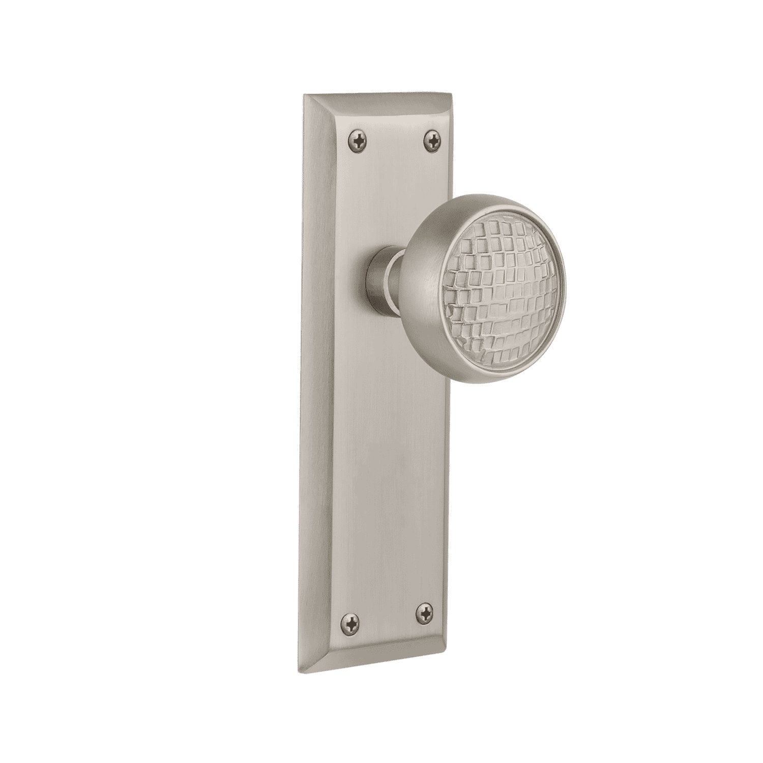 New York Long Plate with Craftsman Knob in Satin Nickel. Double Dummy, Universal Door Handing