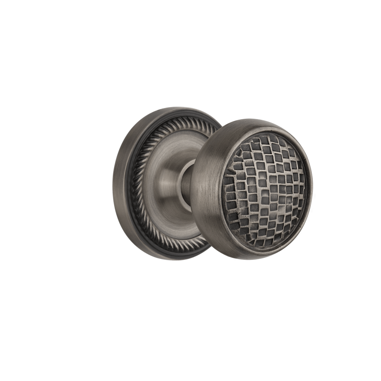 Rope Rosette with Craftsman Knob in Antique Pewter. Double Dummy, Universal Door Handing
