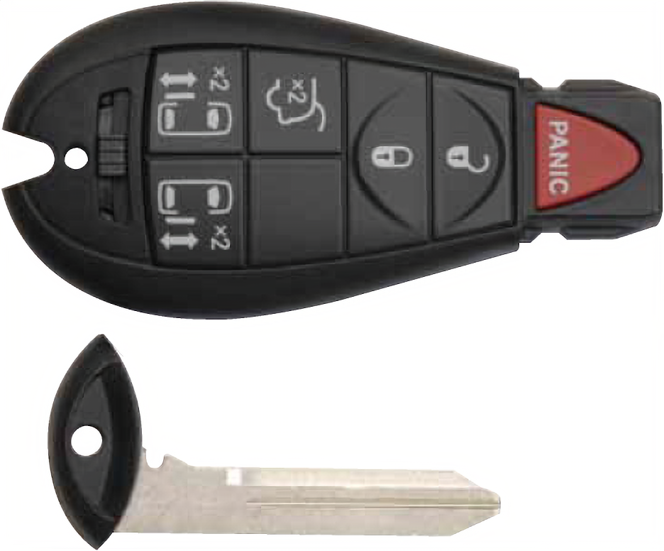 Remotes Head Keys & Remotes FOBIK-2105 PX Chrysler 6 Button FOBIK L,U,P,SD,SD,H is the perfect solution for Chrysler owners looking to enhance their vehicle's accessibility and security. This 6-button smart key features an intuitive design, equipped with essential functions such as lock, unlock, glass, sliding door, and panic buttons, making it incredibly user-friendly. Designed specifically for push-button ignitions, this smart key operates at a frequency of 433 MHz and comes with a Philips ID 46 chip, ensuring reliable performance. The key is FCC certified with the ID IYZ-C01C, attesting to its compliance with regulatory standards. Refurbished to grade A condition, it provides an economical yet high-quality alternative to new keys. Included with your purchase is a CR2032 battery, ensuring immediate functionality right out of the box, as well as an uncut Y159 emergency insert, which serves as a replacement for part number 68029829AA. This FOBIK key is compatible with 2009 to 2016 Chrysler Town and Country models, making it an ideal choice for those vehicles. With its Chrysler logo and dependable design, the FOBIK-2105 PX is both a practical and stylish addition to your automotive accessories.