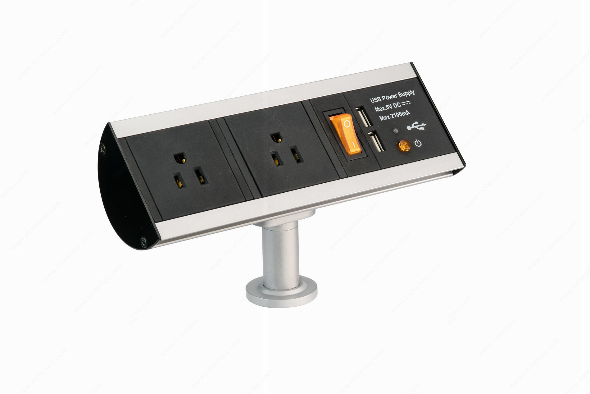 Richelieu 100422090 Surface Power is an elegant solution that transforms any workspace into a tidy, neat, and efficient environment. This versatile power system is designed with functionality in mind, featuring two power receptacles and a USB port, allowing for seamless connectivity of essential devices. Crafted with a sleek black and stainless steel finish, this surface-mounted unit complements modern interiors while providing easy access to power. Its compact dimensions-height of 4 13/32 inches, length of 7 25/32 inches, and width of 2 9/16 inches-make it suitable for various applications, whether in a kitchen, office, or workshop. The unit requires a bore hole of 1 1/4 inches for installation, ensuring a secure fit. Richelieu 100422090 is ETL certified, meeting stringent safety standards, and operates at a tension of 120 V, ensuring reliable performance. With the convenience of UPS shipping, this product is readily available for building professionals and discerning homeowners seeking a practical power solution. Choose Richelieu for a seamless blend of style and utility, enhancing your workspace with ease and sophistication.