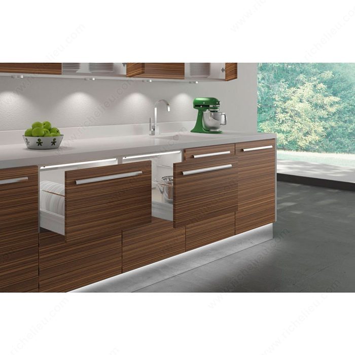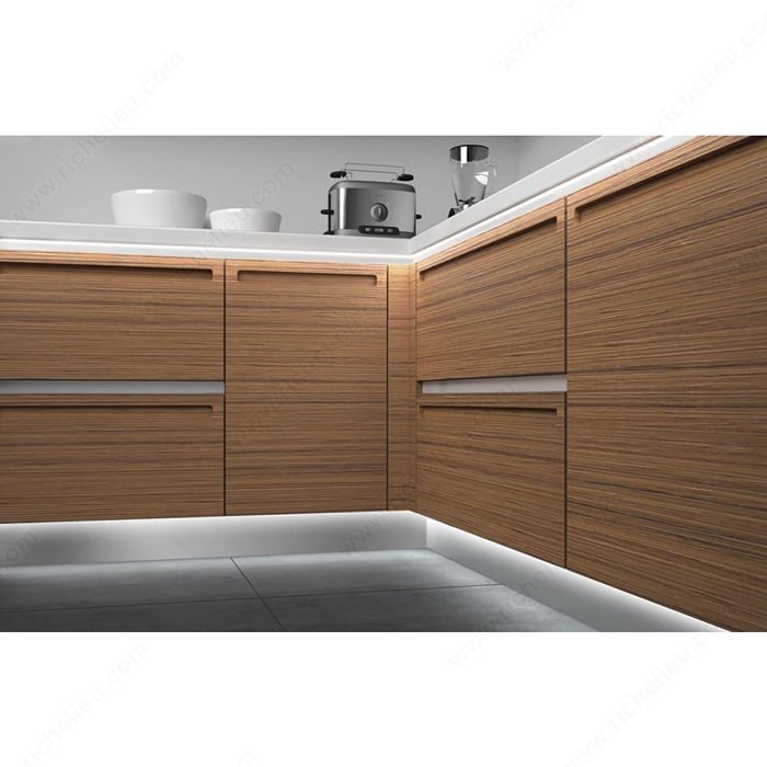 Richelieu 103197122 CH FlexyLED 12V DC Lighting SolutionRichelieu 103197122 CH - FlexyLED12 V DC is a standout solution in the flexible LED strip market, ideal for a variety of settings, including kitchens, living rooms, and commercial spaces. This innovative lighting option features a quick-connect system that allows for seamless connection of modules of different lengths, ensuring consistent spacing between LEDs for an even distribution of light. With a Color Rendering Index (CRI) of 90, the FlexyLED12 provides excellent color accuracy, enhancing the aesthetic appeal of any environment. The warm white light, emitted at a temperature of 3100 K, creates a cozy atmosphere, making it perfect for accent lighting. Designed for versatility, this flexible linear luminaire measures 197 inches in length and has a compact height of just 5/32 inches and a width of 5/16 inches, making it easy to install in various locations such as inside cabinets, under cabinets, or along countertops. The surface mounting capability simplifies installation, while its dimmable feature allows for customizable lighting levels. Operating at 12 V and consuming 24 watts, this LED strip boasts a luminous efficiency of 85 lm/W. The product meets ETL standards, ensuring reliability and safety in your lighting projects. Choose Richelieu’s FlexyLED12 for an efficient and elegant lighting solution.
