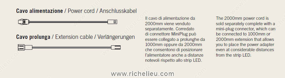 Richelieu 10712040 LED FlexyLed Power Cord is an essential accessory designed for enhancing the functionality of your FlexyLed lighting system. This 40-inch (1016 mm) extension cable allows for greater flexibility in your lighting design by providing additional distance between the power supply and the power cord, making it ideal for various installation scenarios. Crafted with a sleek white finish, the power cord not only blends seamlessly into any environment but also ensures reliable performance. Operating at a low voltage of 12 V, this LED connection element is tailored for use with FlexyLed products, ensuring compatibility and ease of installation. Whether you are a building professional or a knowledgeable homeowner, this extension cable is a valuable addition to your lighting setup. It facilitates a more customized arrangement of your LED lights, helping you achieve the desired ambiance in your space. The Richelieu 10712040 Power Cord can be conveniently shipped via UPS, ensuring that you receive your product promptly. Elevate your lighting solutions with this practical and efficient extension cable, designed to meet the demands of modern lighting projects.