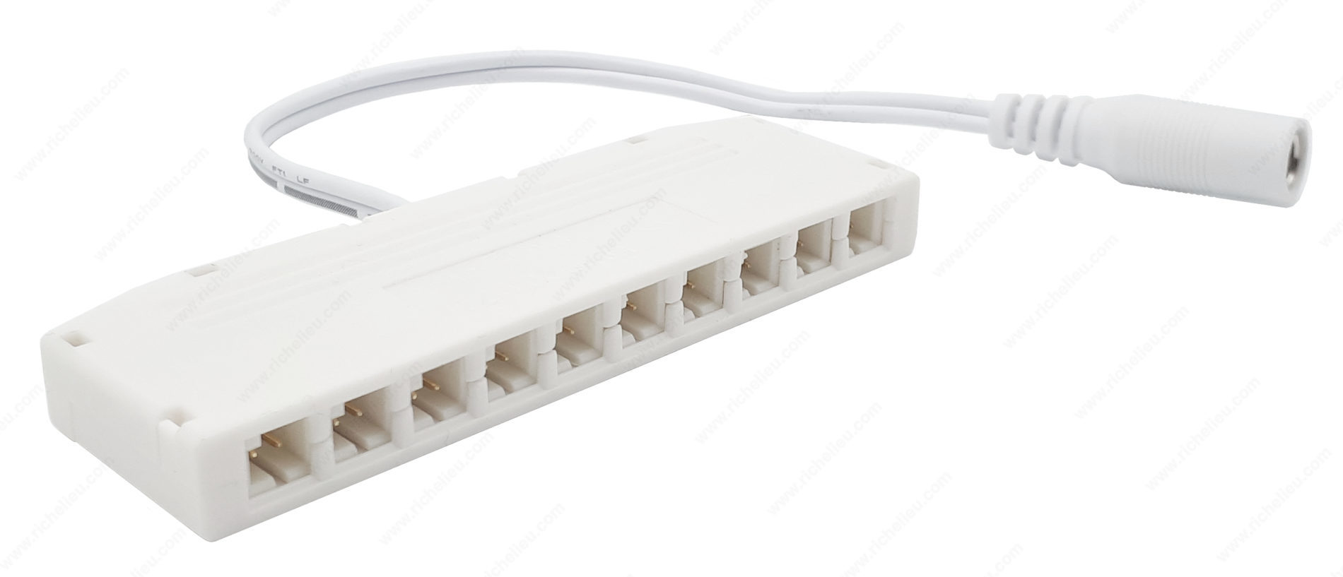 Richelieu 10924DC10 Hub - 24 V dc is designed to streamline your lighting installations, providing a reliable connection point for multiple junction boxes. With its quick connect feature, this hub simplifies the process of setting up LED lighting systems, making it an essential component for both professionals and knowledgeable homeowners. Constructed from durable plastic, the hub is built to withstand the rigors of daily use while maintaining a sleek appearance. The compatibility with the Micro 24 system ensures that this hub can easily integrate with your existing lighting setup, offering seamless connectivity. The 6-inch (153 mm) wire length allows for flexible installation options, accommodating various layout configurations. Operating at a tension of 24 V, the Richelieu 10924DC10 Hub is specifically designed for LED lighting applications, maximizing efficiency and brightness. Whether you are working on a residential project or a commercial space, this hub provides the versatility and reliability needed to achieve outstanding results. Shipped conveniently via UPS, the Richelieu 10924DC10 Hub is your go-to solution for efficient lighting connections, making it an indispensable addition to your toolkit. Elevate your lighting projects with this essential hub that combines functionality and ease of use.