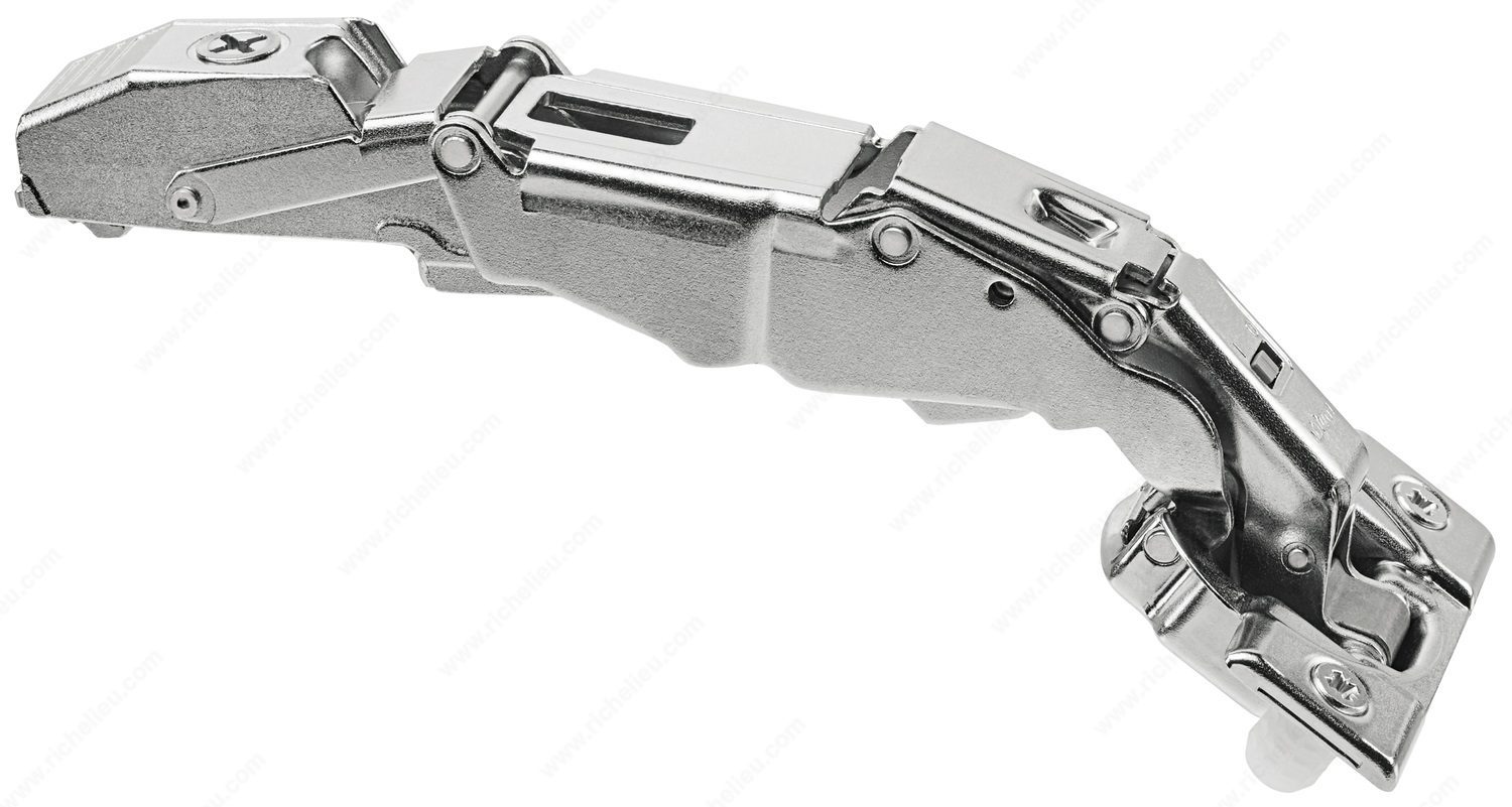 Richelieu 71B7580D180 125 CLIP top BLUMOTION Hinge redefines cabinet functionality with its innovative design and superior performance. This 125° wide angle hinge is engineered for full overlay applications, ensuring zero protrusion, making it ideal for cabinets with inner pull-outs or pull-out surrounds. The integrated BLUMOTION technology provides a soft-closing feature that enhances user experience by ensuring doors close gently and quietly. Designed with versatility in mind, this hinge offers 3-dimensional adjustment capabilities, allowing for precise alignment and installation. The familiar drilling dimensions make it easy to integrate into existing projects without complications. The spring-closing mechanism enhances usability, ensuring doors remain securely closed while enabling effortless access. Crafted with a sleek nickel finish, the Richelieu 71B7580D180 hinge combines aesthetics with functionality, making it a perfect choice for modern cabinetry. It is designed for easy dowel fixing, ensuring a secure and stable installation. This hinge not only meets but exceeds expectations, providing a seamless blend of practicality and style for any kitchen or cabinetry project. Experience the difference in motion and design with this premium hinge, backed by the trusted quality of Blum and Richelieu.