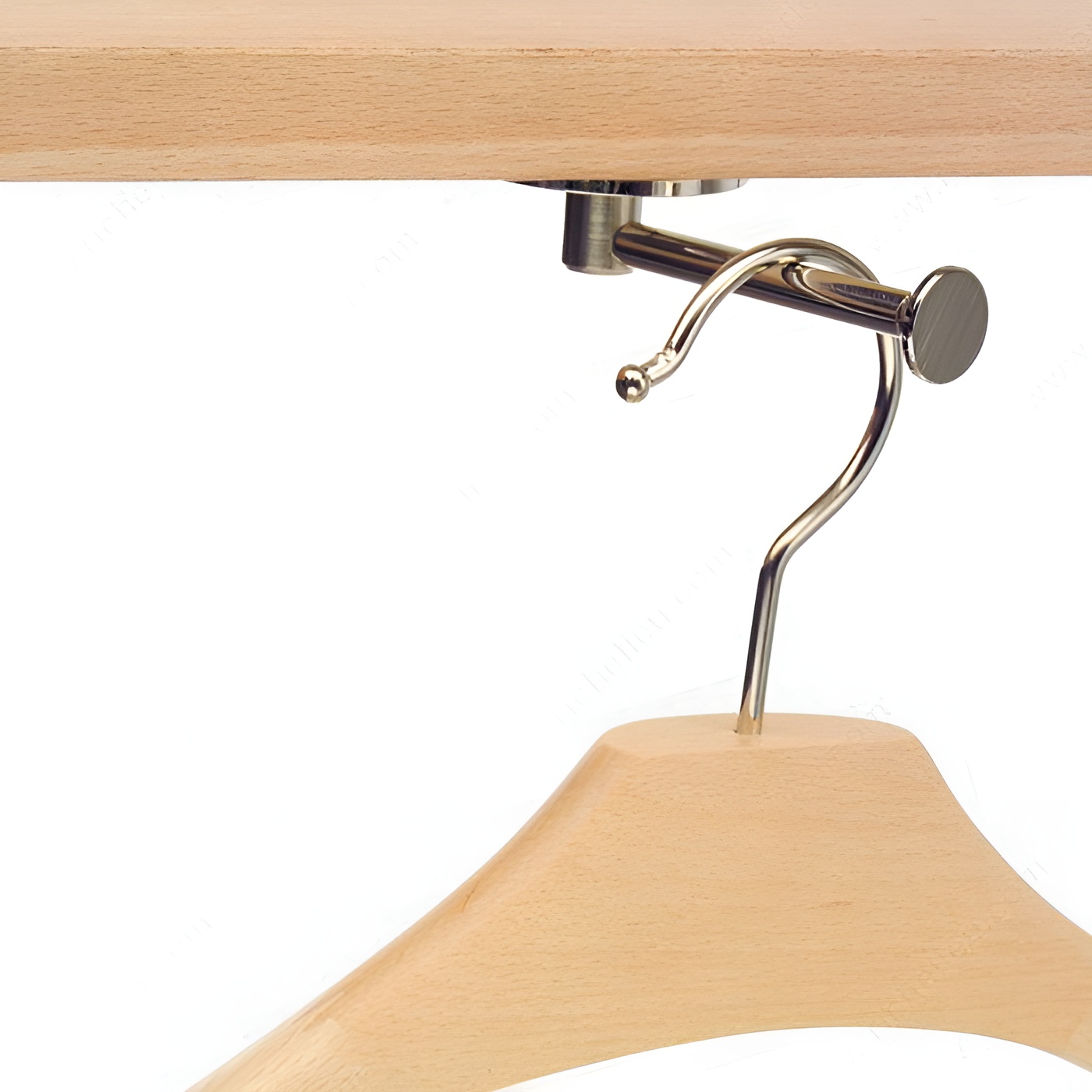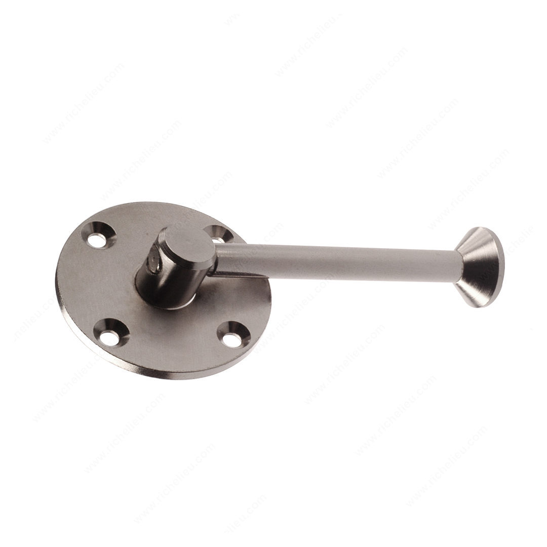 Richelieu 131500195 Clothes Hook offers an elegant solution for your clothing storage needs with its stylish chrome finish and innovative design. This rotating clothes hook is crafted from durable metal, ensuring longevity and reliability in your space. Measuring 4 1/8 inches in depth and 1 31/32 inches in both height and width, it is compact enough to fit seamlessly into limited storage areas. The installation is straightforward, requiring only a few screws to mount it under the top panel and close to the front edge of your cabinet. Once installed, simply pivot the arm rod outward to hang your jackets, dresses, or shirts, and tuck it back inside when not in use. This functionality allows you to maximize your storage while keeping your garments easily accessible. Designed for versatility, the Richelieu clothes hook is perfect for any setting, whether in a closet, entryway, or laundry room. Its nickel finish adds a touch of sophistication, making it not only a practical addition but also an attractive one. Elevate your organization game with this classy and efficient garment storage solution that blends seamlessly with your décor.
