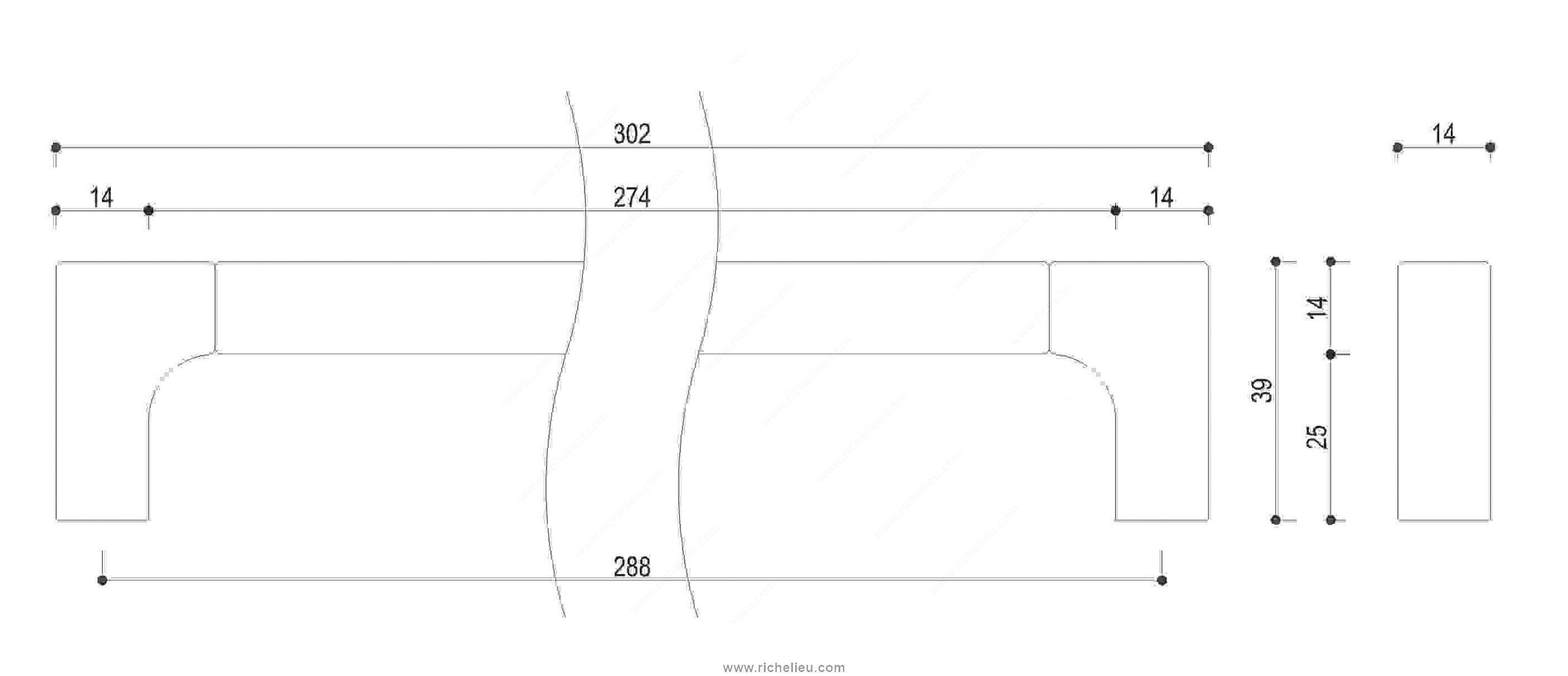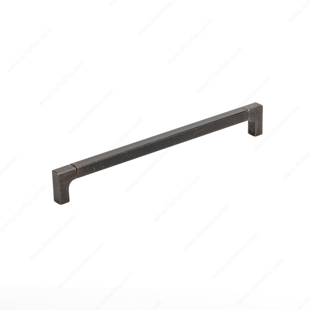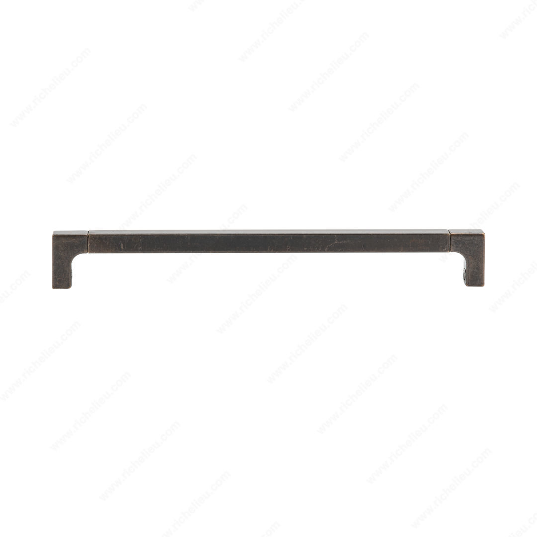 Richelieu 1414288909 Modern Metal Pull - 1414 showcases a striking rectangular design, perfect for those seeking an industrial aesthetic in their interiors. Crafted from durable steel, this pull features visible assembly joints, emphasizing its modern, robust style that complements a variety of cabinetry and furniture. With an overall length of 11 7/8 inches and a center-to-center measurement of 11 3/8 inches, this pull is designed for seamless integration into your space. The matte black iron finish not only adds a touch of sophistication but also ensures longevity and resistance to wear. Its dimensions, including a projection of 1 17/32 inches and a width of 9/16 inches, make it a practical choice for easy gripping. Included with the pull are M4 screws, facilitating straightforward installation. Whether you’re updating a kitchen, bathroom, or any living area, the Richelieu 1414 pull is versatile enough to enhance any decor style. It is part of the comprehensive 1414 collection, allowing for cohesive design throughout your project. Ship via UPS for convenient delivery and transform your space with this stylish, functional hardware option that combines modern design with practicality.