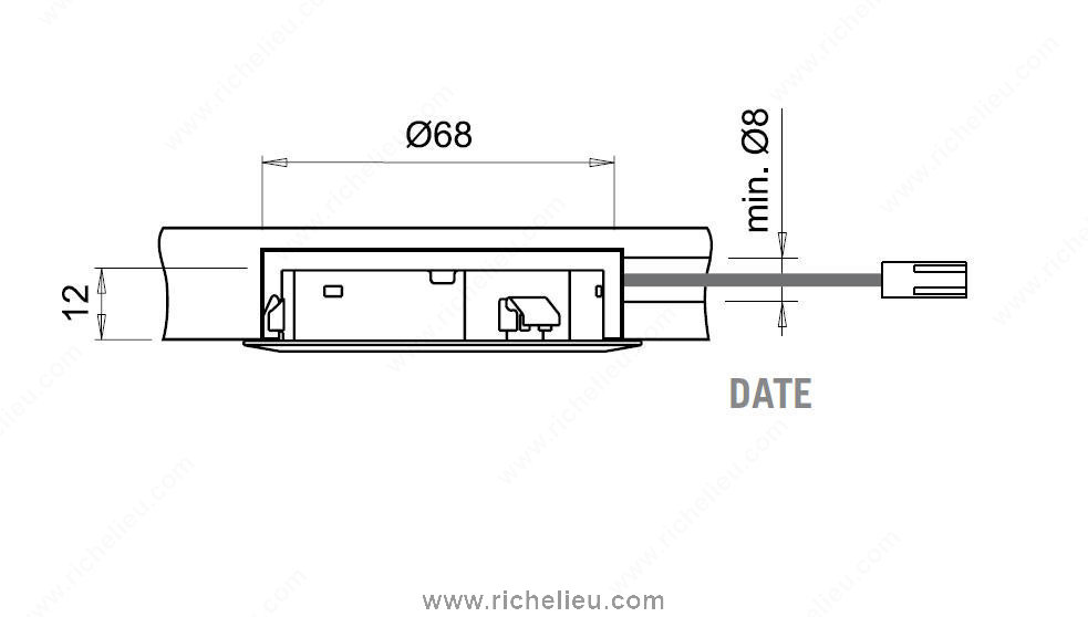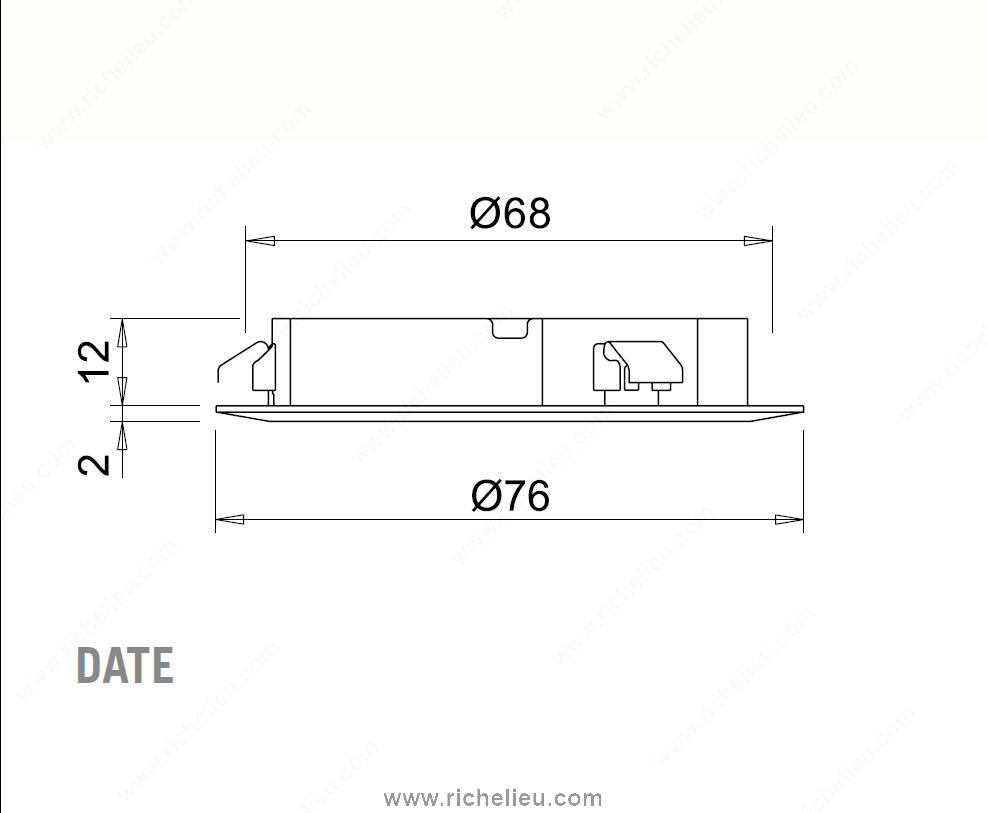 Richelieu 152124010 LED Date 3.4W 12V dc is a highly adaptable spotlight designed for diffused lighting, utilizing innovative LED COB (Chip on Board) technology. This European-made fixture is an ideal choice for those seeking powerful LED lighting without the distraction of cluster diode patterns. With a color rendering index (CRI) of 80 and a neutral white light at a color temperature of 4000 K, this spotlight ensures your spaces are illuminated with clarity and vibrancy. Perfect for various applications, including kitchens, living rooms, and commercial settings, the Richelieu Date spotlight features a recessed design with a bore hole of 2 11/16 inches and a recessed depth of 15/32 inches. The fixture is dimmable, allowing for customizable ambiance to suit different moods and occasions. Mounting is hassle-free thanks to its compatibility with Micro 12 connection types. With a luminous efficacy of 130 lm/W and a luminous flux of 230 lumens, this spotlight delivers efficient and effective lighting. Constructed from durable aluminum and rated IP20, it is designed to withstand indoor environments. Certified by cULus, the Richelieu 152124010 is a contemporary lighting solution that combines style and functionality, making it a versatile choice for any modern space.