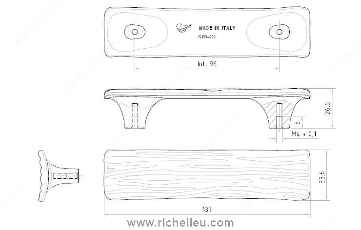 Richelieu 159096140 Transitional Metal Pull - 159 delivers a striking blend of style and functionality, perfect for enhancing furniture and cabinetry. The pull features a textured organic design that captures attention and adds a unique touch to any space. With an overall length of 5 13/32 inches and a width of 1 11/32 inches, it is perfectly proportioned for a variety of applications. This pull boasts a center-to-center measurement of 3 25/32 inches, making it compatible with standard cabinetry dimensions. The chrome finish, complemented by a gray accent, lends a modern yet timeless appeal, suitable for transitional décor. Crafted from durable metal, it promises longevity and reliability in daily use. Installation is straightforward, as the pull comes with M4 screws included, ensuring a secure fit. With a projection of 1 1/16 inches, it offers ample grip while maintaining a sleek profile. The Richelieu 159096140 is not only a functional hardware piece but also an elegant design element, making it an ideal choice for builders, designers, and homeowners looking to elevate their interiors. Experience the perfect combination of aesthetics and utility with this exceptional transitional pull.