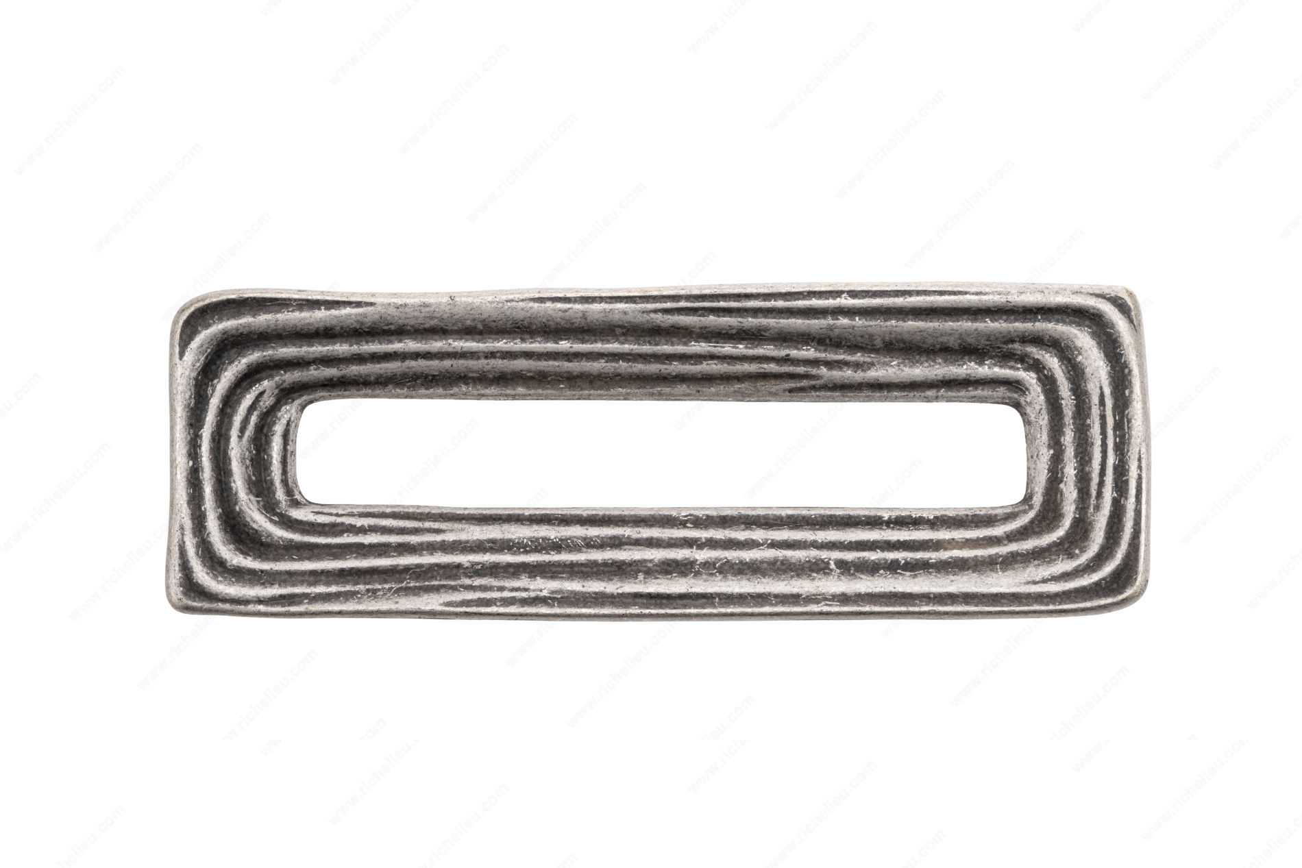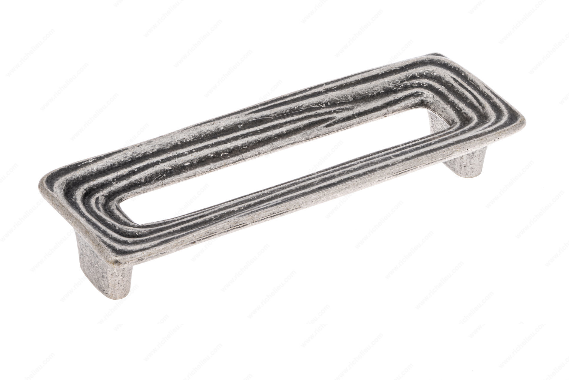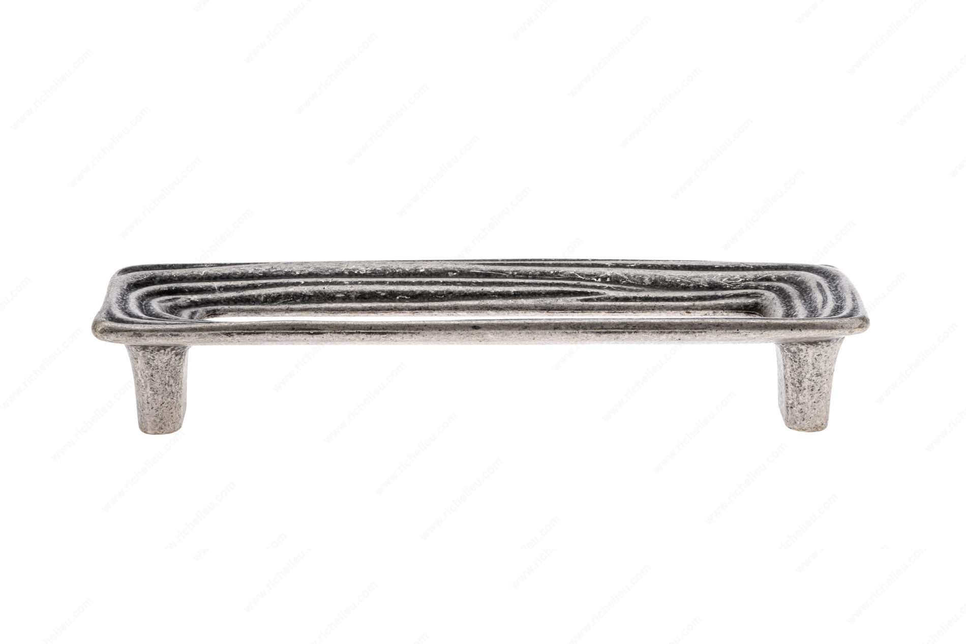 Richelieu 160128904 Transitional Metal Pull - 1601 offers a striking blend of form and function, designed to enhance both furniture and cabinetry. This rectangular pull features a textured organic design with a hollow center and elegantly tapered feet, making it a standout choice for any transitional décor. The stylish faux iron finish in gray and chrome not only adds a modern touch but also complements a variety of color palettes. Measuring 5 29/32 inches in length with a center-to-center distance of 5 1/32 inches, this pull is crafted from durable metal, ensuring longevity and resilience in high-use areas. Its overall projection of 7/8 inch allows for comfortable grip and easy operation, while the width of 2 1/16 inches ensures it is visually appealing without overwhelming your space. Installation is made simple with included M4 screws, allowing you to achieve a professional look with minimal effort. Whether updating kitchen cabinets or enhancing furniture, the Richelieu 160128904 pull is a versatile choice that adds character and sophistication. Elevate your design with this exquisite piece that embodies both artistic flair and practical functionality.