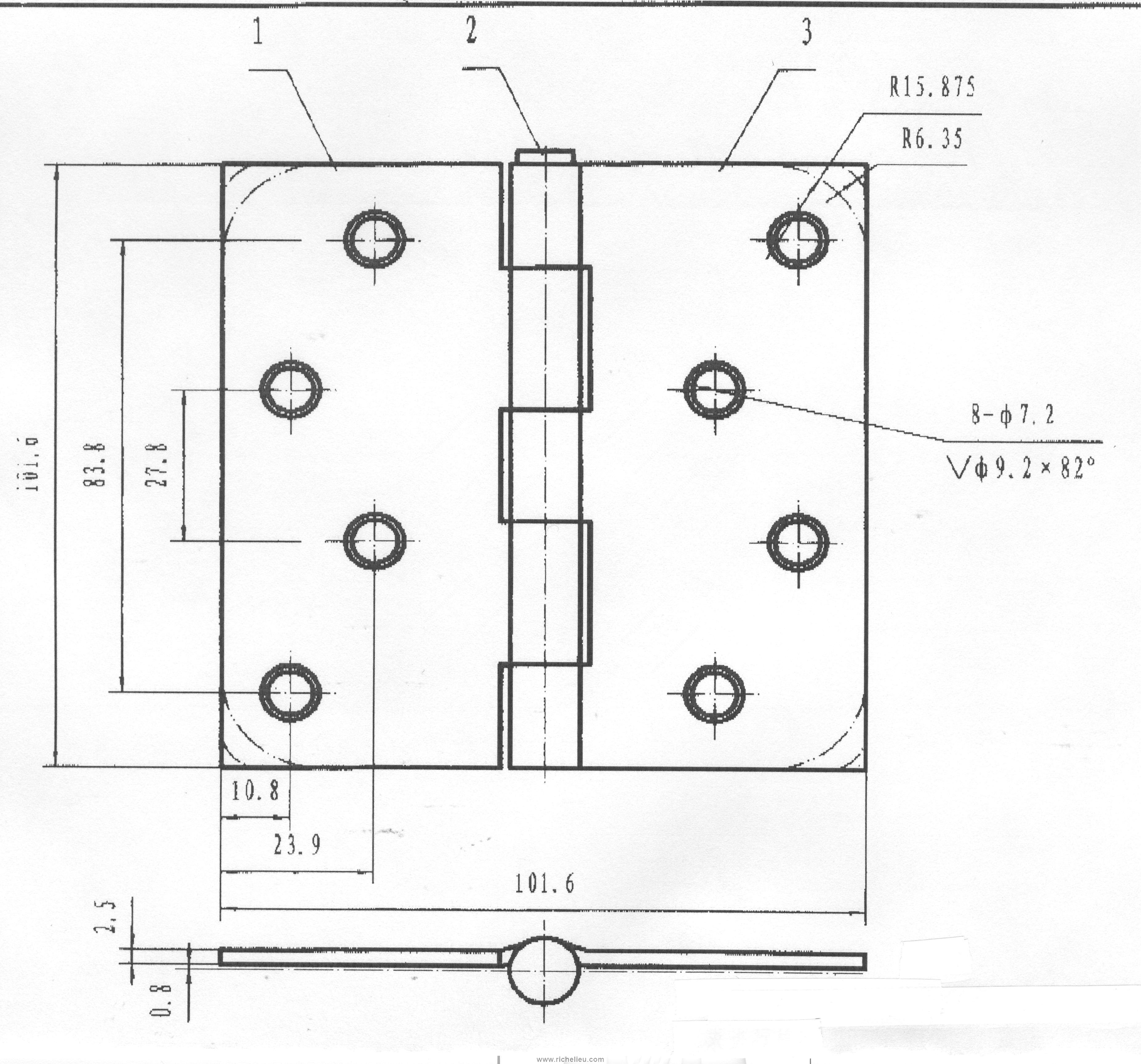 4" Full Mortise Butt Hinge - 5/8" Radius