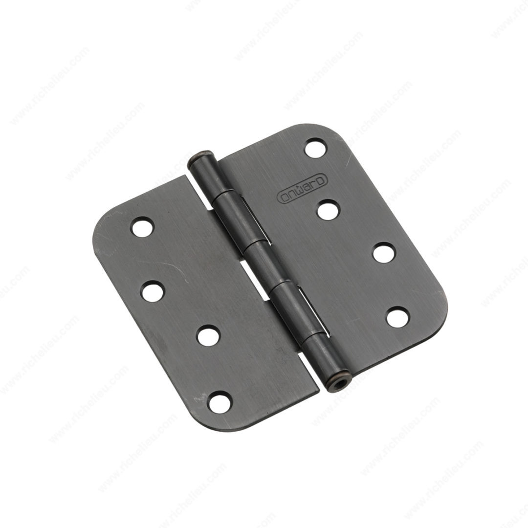 Richelieu 1822ORBB 4" Full Mortise Butt Hinge - 5/8" Radius is an essential addition to any home, combining versatility and style. Crafted from durable steel, this hinge is designed for standard doors and ensures reliable performance. With a polished oil-rubbed bronze finish, it adds a sleek, contemporary touch that complements various design aesthetics. Measuring 4 inches in height and width, this hinge features a 5/8" radius corner and a 1/16" gap, making it ideal for seamless door operation. The removable pin allows for easy installation and maintenance, while the included screws ensure a hassle-free setup out of the box. Each box contains two hinges, capable of supporting a load capacity of up to 60 pounds per three hinges, making it suitable for a range of door types. Whether you are working on a new construction project or a home renovation, the Richelieu 1822ORBB hinge provides the perfect balance of functionality and elegance. Its stylish design and robust construction guarantee that it will stand the test of time while enhancing the overall look of your spaces. Upgrade your doors with this reliable and attractive hinge to elevate your home’s interior.