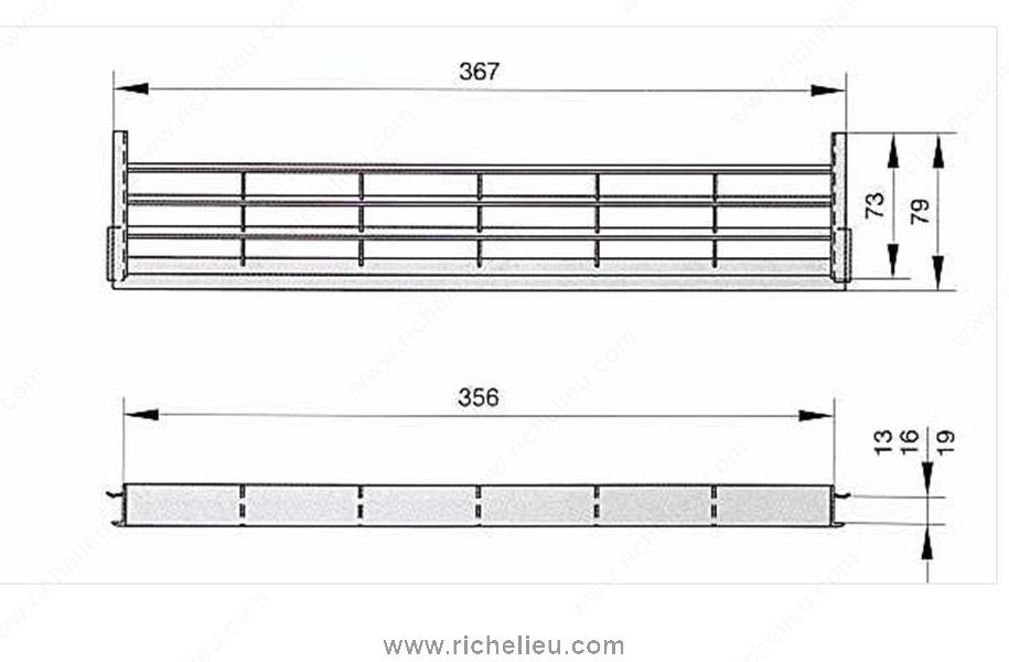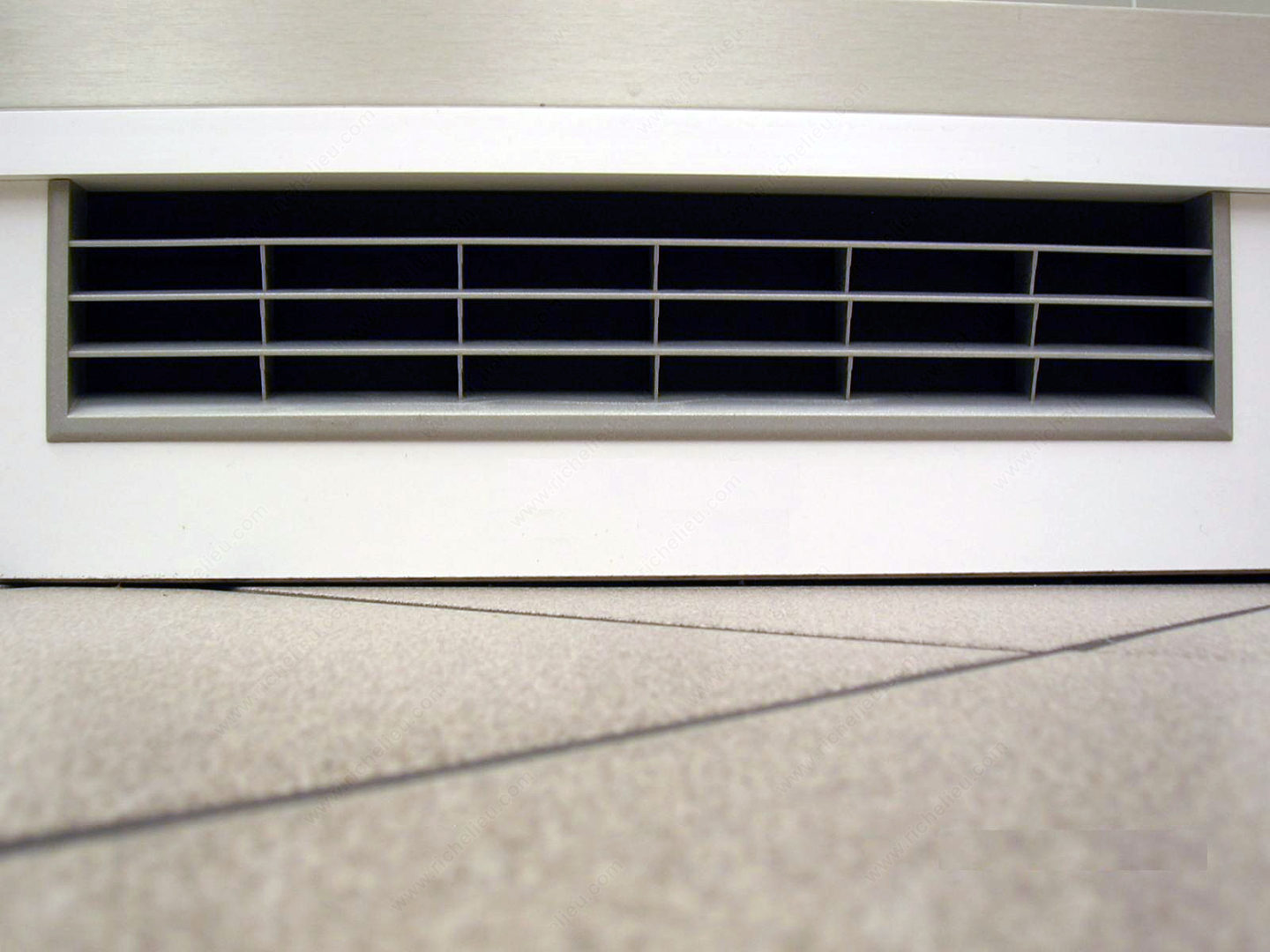 Richelieu 195180 Ventilation Grid, Satin Nickel - 367 mm x 79 mm offers a sophisticated solution for enhancing airflow in your kitchen or pantry. Designed specifically for use as a plinth or kickplate, this ventilation grid is ideal for placement under built-in appliances such as refrigerators or in cabinetry. The elegant satin nickel finish not only adds a modern touch but also seamlessly complements a variety of cabinet styles. This ventilation grid facilitates optimal airflow, preventing the buildup of heat and humidity, which can compromise the performance of your appliances. With an air slot measuring 7 inches, it ensures that your space remains well-ventilated. The cutout dimensions of 356 mm x 73 mm (14" x 2") and the minimum plinth height of 85 mm (3-5/16") make it versatile for different installation requirements, while its compatibility with 16 mm (5/8") thick panels offers additional flexibility. Constructed from durable plastic, the overall dimensions of the grid are 14 ½ inches in length, 3 1/8 inches in width, and only ¾ inch in height, making it a discreet yet effective addition to your cabinetry. Enhance both functionality and aesthetic appeal with the Richelieu 195180 Ventilation Grid.