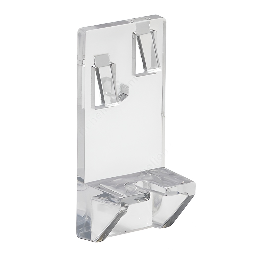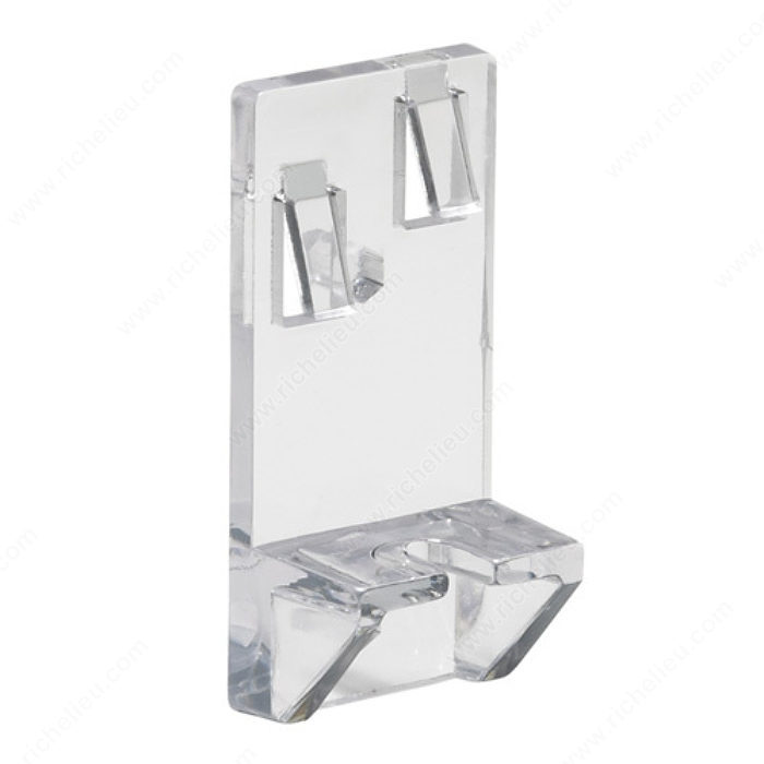 Richelieu 1952CLS Heavy-Duty Locking Shelf Clip - 5 mm offers a robust solution for securing your shelves with confidence. This innovative shelf clip features a unique locking design that ensures stability and prevents accidental dislodging, making it an ideal choice for kitchens and various other rooms. Whether you're replacing a broken peg or upgrading your shelving system, the 1952CLS is crafted to fit seamlessly into peg-mounted setups. Constructed from durable plastic, this clip boasts an impressive load capacity of 44.1 lb per shelf, ensuring it can handle your storage needs with ease. With overall dimensions of 2 1/16 in in height, 1 1/16 in in width, and a projection of 23/32 in, it is designed to accommodate shelf thicknesses ranging from 3/4 to 1 in. The clear finish allows for a discreet appearance, blending effortlessly with any décor. Each bag contains 24 units, providing ample clips for multiple applications. The product adheres to ANSI/BHMA standards, ensuring reliability and quality. Easy to install with a drilling diameter of 3/16 in, the Richelieu 1952CLS Heavy-Duty Locking Shelf Clip is a must-have for anyone looking to enhance their shelving solutions.