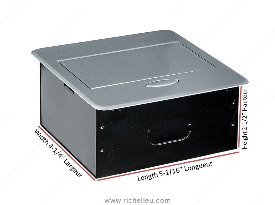 Richelieu 201214100 is the ultimate solution for decluttering desks, workstations, or conference tables. This contemporary power station features two conveniently placed power receptacles, allowing users to easily connect devices without the hassle of tangled cords. Designed for recessed mounting, it seamlessly integrates into any workspace, maintaining a sleek appearance while maximizing accessibility. Constructed with a stylish finish available in both black and silver, this power station complements various interior designs. Its compact dimensions-measuring 5 7/8 inches in length, 5 1/4 inches in width, and a height of 2 5/8 inches-make it an unobtrusive addition to furniture setups. The recessed depth of 2 5/8 inches ensures a flush fit, enhancing the overall aesthetic of the installation. Certified by ETL for safety and reliability, the Richelieu power station operates at a tension of 120 V, catering to standard electrical needs in professional environments. This elite product not only enhances functionality but also contributes to a cleaner and more organized workspace. Ideal for both building professionals and savvy homeowners, the Richelieu 201214100 power station is a must-have for modern living and working spaces.
