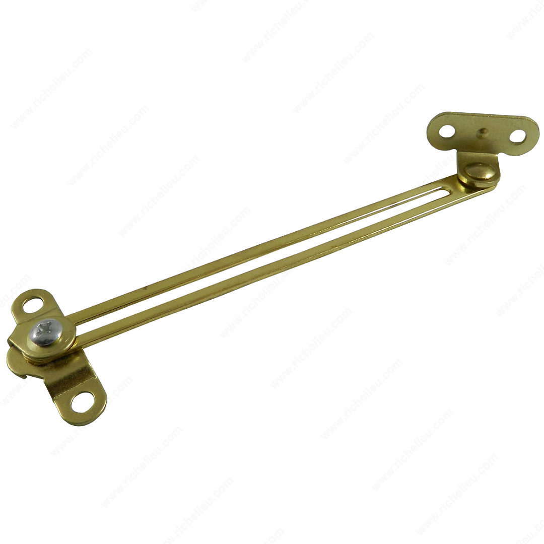 Richelieu 204BR Lid Support - Right Position provides an ideal solution for securing lids on trunks, toy boxes, and other storage units. This elegantly designed lid support not only enhances functionality but also adds a touch of style to your space, ensuring that the lids remain open without the risk of slamming shut. Crafted from durable steel and finished in a classic brass, this lid support combines strength with aesthetic appeal, making it suitable for both contemporary and traditional decor. Measuring 5 1/2 inches in length, it is designed to fit a variety of applications, offering reliable performance while maintaining a low profile. The Richelieu 204BR comes with all necessary mounting hardware included, making for a straightforward installation process. Packaged conveniently in a blister of two units, this product ensures you have what you need to enhance multiple areas of your home or workspace. Ideal for building professionals and knowledgeable homeowners, the Richelieu 204BR Lid Support is a practical addition that promotes safety and convenience. Whether it’s for a child’s toy box or a decorative trunk, this lid support is your go-to solution for stylish storage management.