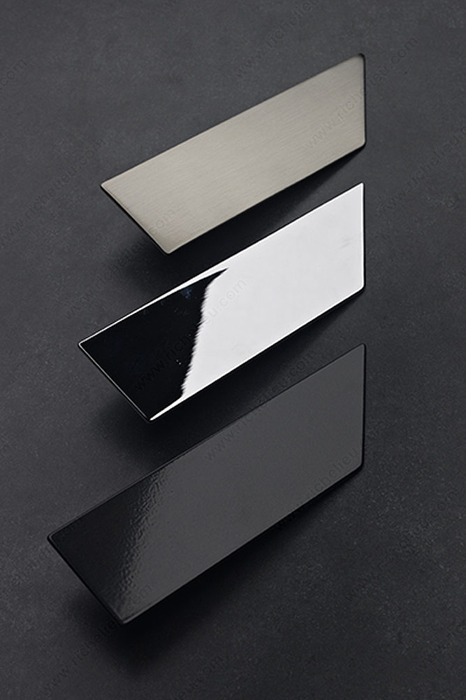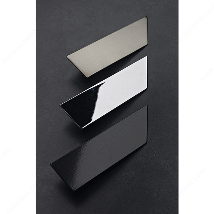 Richelieu 2307150140 Modern Metal Pull - 2307 presents an elegant solution for enhancing the aesthetic appeal of your cabinetry. This pull features a striking geometric shape that lends itself to innovative design possibilities, allowing for a unique visual impact when paired diagonally on your cabinets. Crafted from durable metal, it combines both functionality and style, making it a perfect choice for modern interiors. With an overall length of 5 13/16 inches and a width of 1 9/16 inches, this pull offers a comfortable grip while maintaining a sleek profile. The center-to-center measurement of 2 17/32 inches ensures compatibility with a variety of cabinet configurations. Finished in a sophisticated chrome with a contemporary gray accent, the Richelieu 2307150140 blends seamlessly into any kitchen or bathroom decor. Installation is hassle-free, as it comes with M4 screws included, allowing you to easily update your cabinets. As part of the Fusion Collection, this pull embodies a modern design ethos that appeals to both building professionals and discerning homeowners. Elevate your cabinetry with the Richelieu 2307150140 Modern Metal Pull and enjoy the perfect balance of form and function in your space.