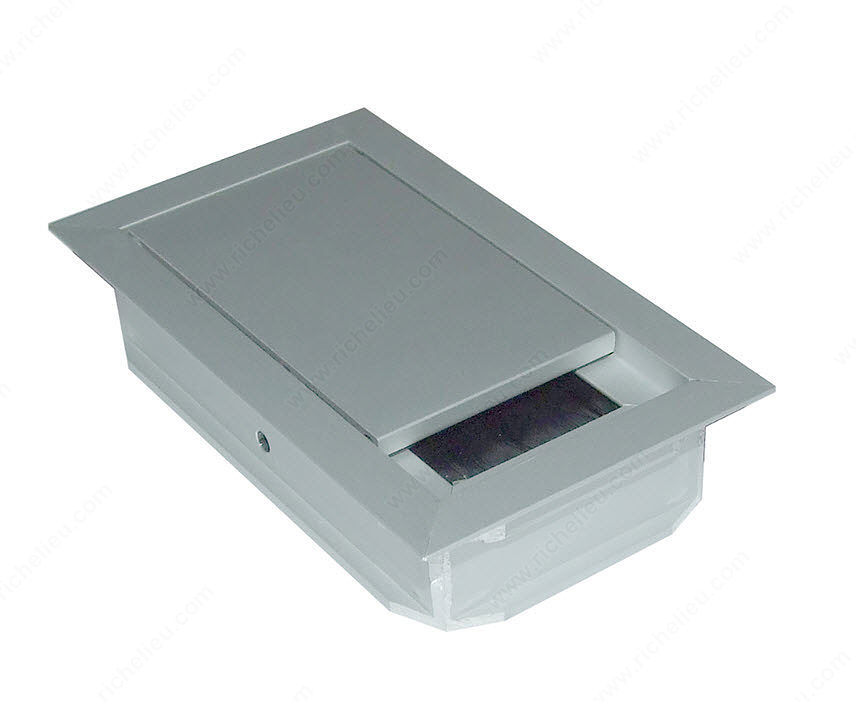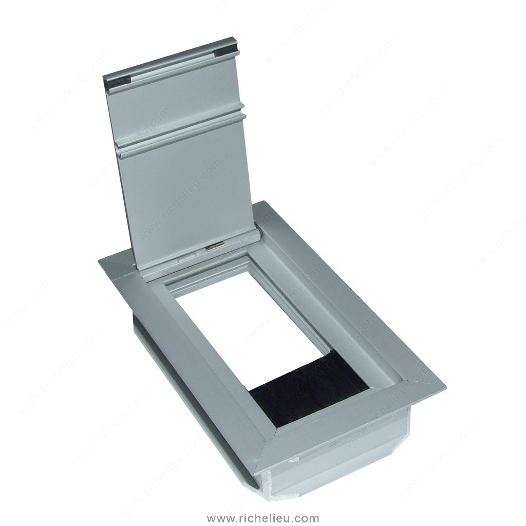 Richelieu 2341212100 Rectangular Grommet with Brush offers a sleek and functional solution for managing cables in various settings. Constructed from durable aluminum, this cable outlet features a straight flap cover complemented by a black brush seal, ensuring a clean and professional appearance while effectively concealing and organizing wires. With overall dimensions of 4 23/32 inches in length, 2 3/4 inches in width, and a height of 1 1/32 inches, this grommet is designed to fit seamlessly into your workspace. The recessed depth of 15/16 inches provides ample space for cables without compromising the surface integrity. The aluminum finish in silver not only enhances the aesthetic appeal but also ensures long-lasting durability. This product is ideal for both residential and commercial applications, making it a versatile choice for builders, designers, and DIY enthusiasts alike. The drilling dimensions of 4 7/16 inches in length and 2 15/32 inches in width facilitate easy installation. Richelieu 2341212100 is shipped via UPS, ensuring a prompt delivery to meet your project timelines. Simplify your cable management with this elegant and efficient grommet that combines form and function in one essential accessory.
