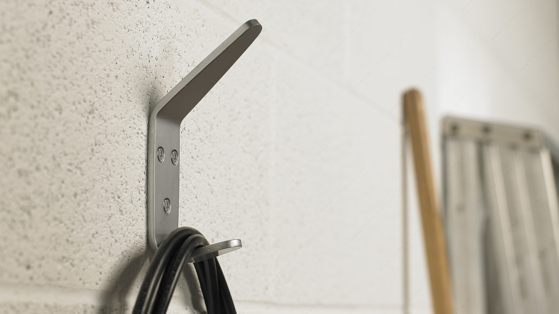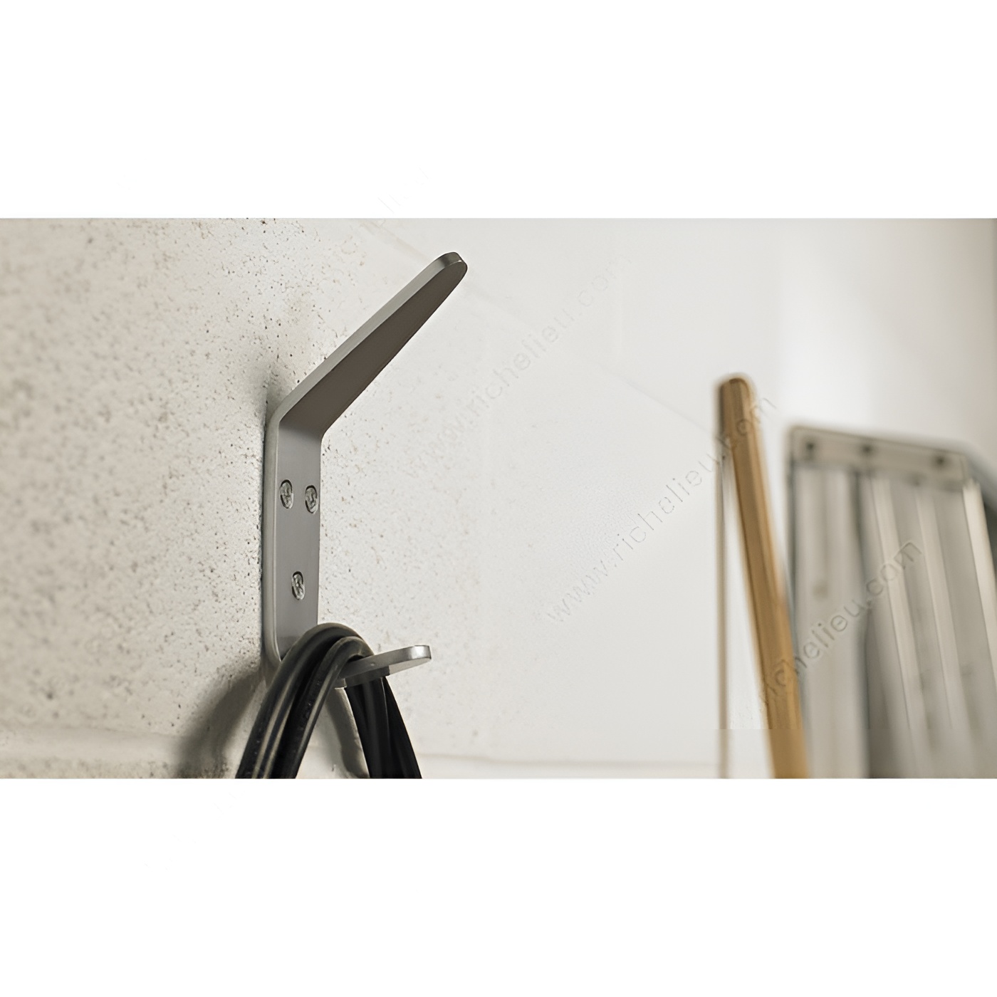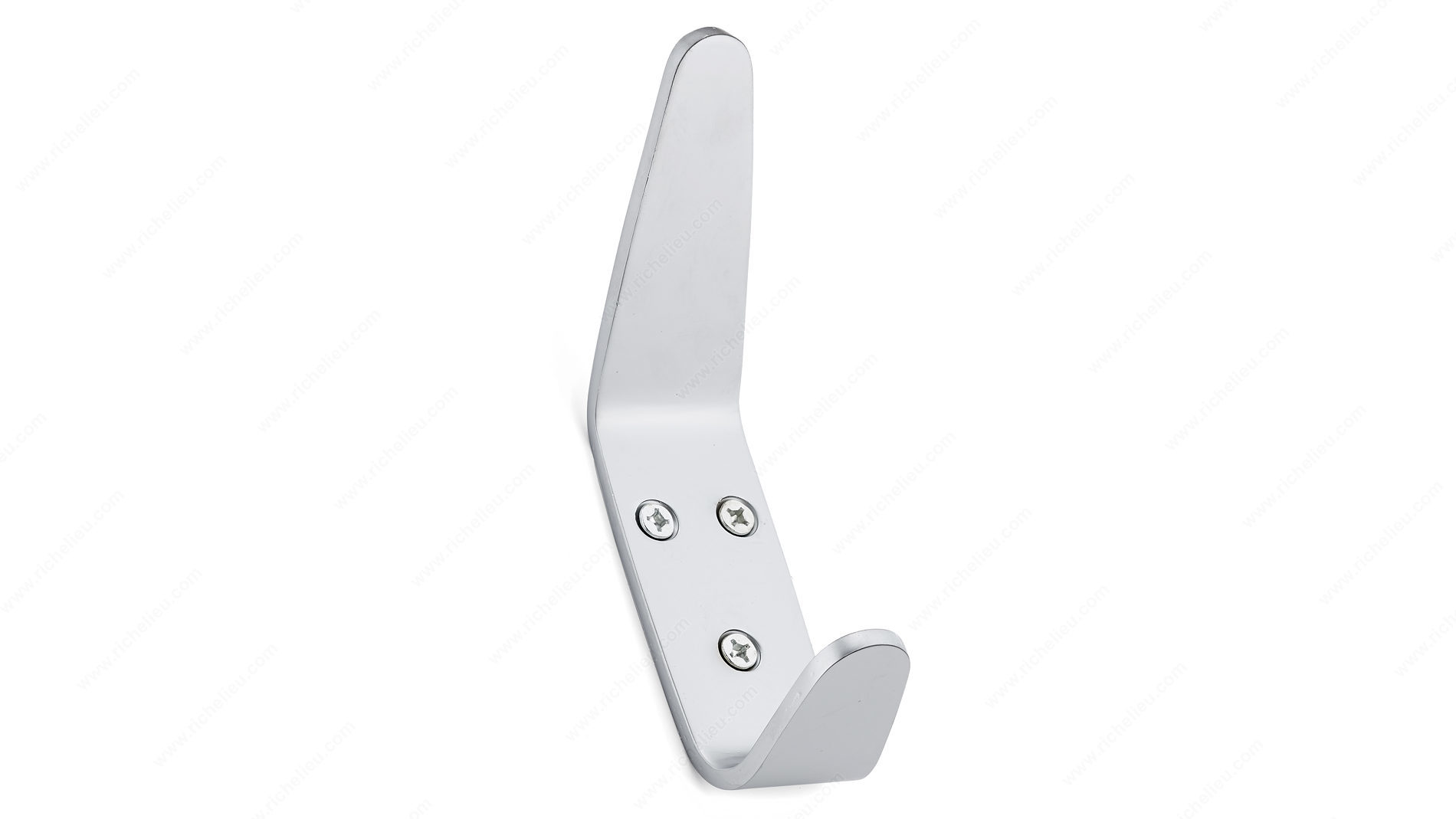 Richelieu 2375SCV 5-1/2 in Heavy Duty Coat Hook is designed to combine functionality with style, making it an ideal addition to any space. Crafted from durable metal, this utility hook features a sleek satin chrome finish that complements a wide range of interiors. The dual arm design not only enhances its aesthetic appeal but also doubles your storage potential, allowing you to hang multiple items securely. With an overall height of 5 1/4 inches and a projection of 2 17/32 inches, this heavy-duty coat hook is versatile enough for use in various areas of your home, including bedrooms, bathrooms, entryways, mudrooms, and closets. Its unique shape accommodates accessories of all sizes, ensuring practicality without sacrificing style. The coat hook boasts a robust load capacity of 22 pounds, making it suitable for heavier garments and bags. Installation is straightforward, as it can be mounted on walls or doors with the included wood screws. Available in a contemporary gray and chrome color scheme, the Richelieu 2375SCV is not just a functional piece but also a stylish solution for organizing your space efficiently.