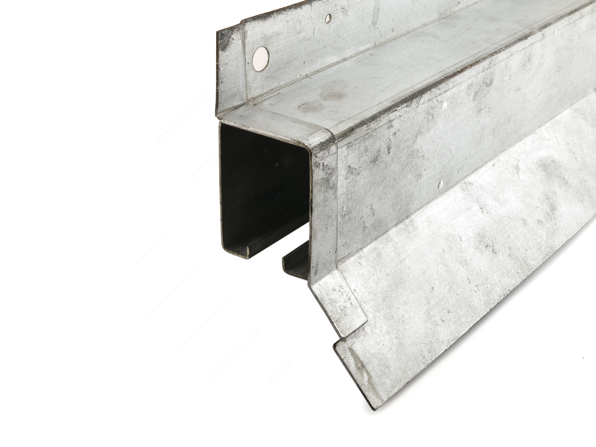 Richelieu 24651090GABC Heavy Duty Galvanized Steel Box Rail with Flashing offers a robust solution for sliding doors on heavy-duty industrial garage and barn doors. Designed primarily for exterior applications, this commercial trolley track is engineered for simple installation, making it an ideal choice for professionals and knowledgeable homeowners alike. This box rail supports a maximum load capacity of 450 lbs, accommodating various door materials, including aluminum, metal frames, and wood. With a door thickness range of 1 1/2 to 3 1/2 inches, the system seamlessly integrates into your existing setup. The overall height of the rail measures 2 3/8 inches, while its generous length of 12 feet ensures ample coverage for larger openings. The galvanized finish not only enhances durability but also provides protection against corrosion, ensuring that your sliding doors operate smoothly in various weather conditions. Designed for wall mounting, the running track type allows for efficient movement and reliability. Richelieu’s heavy-duty box rail is packaged in a convenient 12 linear foot format, making it easy to transport and install. Elevate your sliding door solutions with this essential architectural fitting, tailored for exceptional performance and longevity.