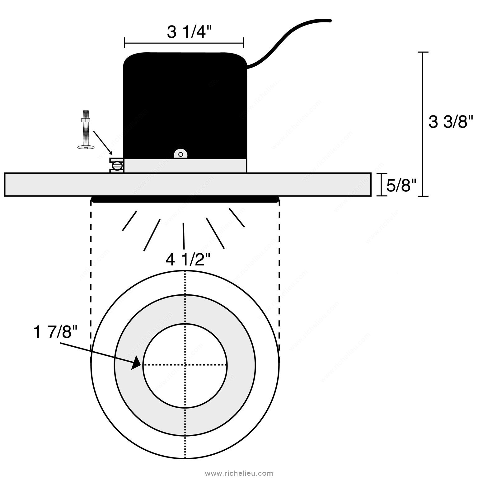 Richelieu 0107140 25 W Recessed Light offers a sophisticated lighting solution tailored for modern interiors. This wide-rim, built-in unidirectional light is designed to seamlessly integrate into various spaces, including kitchens, offices, and furniture applications. With a bore hole of 3 7/8 inches and a recessed depth of 2 3/4 inches, it provides a clean and unobtrusive installation that enhances the aesthetic of any room. Featuring a sleek chrome finish, this recessed light measures 4 3/8 inches in diameter, adding a touch of contemporary elegance to your decor. The light operates on 120 volts and accommodates a 25-watt incandescent bulb, ensuring a warm and inviting glow that is perfect for both functional and ambient lighting. Equipped with a 6-foot power cord, the Richelieu 0107140 allows for flexible placement, making it an ideal choice for furniture installations or as part of a larger lighting scheme. Designed with an elite price point, this product not only elevates your space but also reflects a commitment to quality and style. Enhance your environment with this exceptional recessed light that combines practicality with modern design.