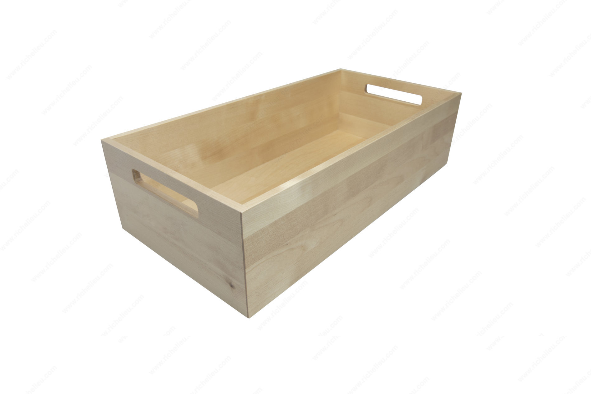 Richelieu 250538031 Wood Boxes with Handles are the perfect solution for organizing your Dispensa cupboards. Designed with functionality in mind, these multifunctional boxes feature ideal-sized handles that make transporting frequently used products a breeze. Available in two trendy finishes-birch and walnut-these boxes effortlessly blend style with practicality, enhancing your storage spaces. Measuring 16 3/4 inches in depth, 4 11/32 inches in height, and 8 11/32 inches in width, each box is thoughtfully crafted to fit seamlessly into your kitchen environment. They are designed for areas focused on storage and preparation, ensuring that your essentials are always within reach. The wood dividers with handles not only provide efficient drawer organization but also add a touch of elegance to your home. Richelieu's commitment to quality is evident in these wood boxes, which can be easily shipped via UPS for your convenience. Perfect for both building professionals and knowledgeable homeowners, these boxes are an essential addition to any kitchen that values both style and functionality. Elevate your storage solutions with the Richelieu 250538031 Wood Boxes with Handles and enjoy a more organized living space.