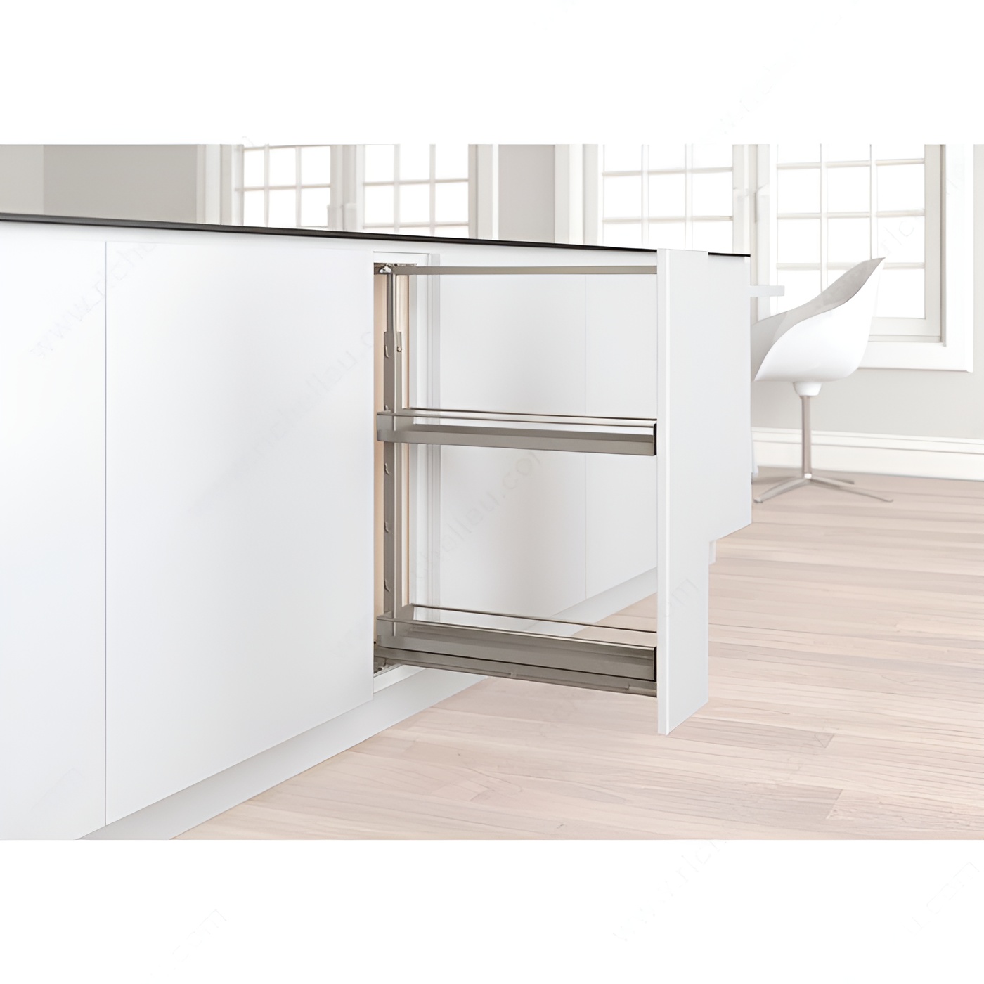 Richelieu 25475100 Metal Baskets for Base Pull-Out II offer a sleek and efficient solution for food storage, preparation, and cooking areas. Crafted from durable metal and finished in a sophisticated silver gray, these sliding baskets are designed to enhance functionality while maintaining a modern aesthetic. With precise interior dimensions required-depth of 22 3/4 inches, a minimum height of 2 5/32 inches, and a width of 4 23/32 inches-these baskets are perfect for maximizing space in your cabinetry. The product dimensions measure 20 3/8 inches in depth, 1 31/32 inches in height, and 4 1/32 inches in width, making them ideal for a variety of kitchen setups. The soft stop mechanism ensures smooth and quiet operation, allowing for easy access to stored items without the risk of slamming. Designed for versatility, these baskets can be shipped via UPS, making them a convenient choice for both building professionals and discerning homeowners alike. Richelieu's commitment to quality and innovation ensures that the 25475100 Metal Baskets not only meet but exceed expectations, providing a stylish and functional addition to any kitchen. Upgrade your storage solutions today with these reliable sliding baskets.