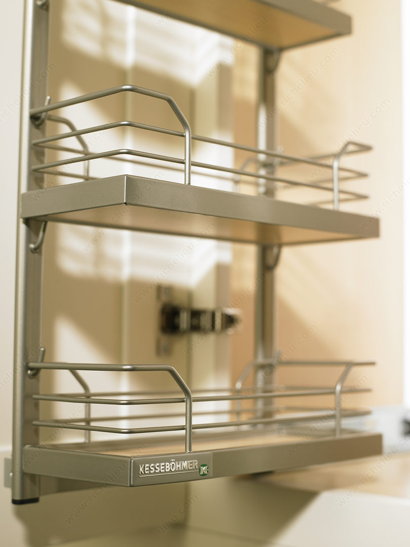 Richelieu 258114030 Set of Arena Baskets for Wall Sliding Systems offers a smart storage solution tailored for narrow sliding systems. This set includes two elegantly designed baskets featuring an anti-slip surface, perfect for securing your essentials. Constructed to fit both face frame and frameless cabinets, these baskets are ideal for organizing oils, spices, cans, and more, ensuring that everything is within easy reach. With a capacity of up to 17.6 lbs, these baskets are both practical and robust. Their white and chrome finish adds a touch of modern elegance to any kitchen environment, while their compact dimensions-measuring 3 inches in width, 2 3/4 inches in height, and 9 7/8 inches in depth-allow for seamless integration into upper cabinets. To determine the required opening width, simply add 1-1/4 inches to the width of the largest basket, ensuring a perfect fit. Designed for food storage and general storage solutions, the Richelieu Arena Baskets combine functionality with style, making them an essential addition to your cabinetry. Ship via UPS for convenient delivery and enhance your kitchen organization effortlessly with these thoughtfully designed baskets.