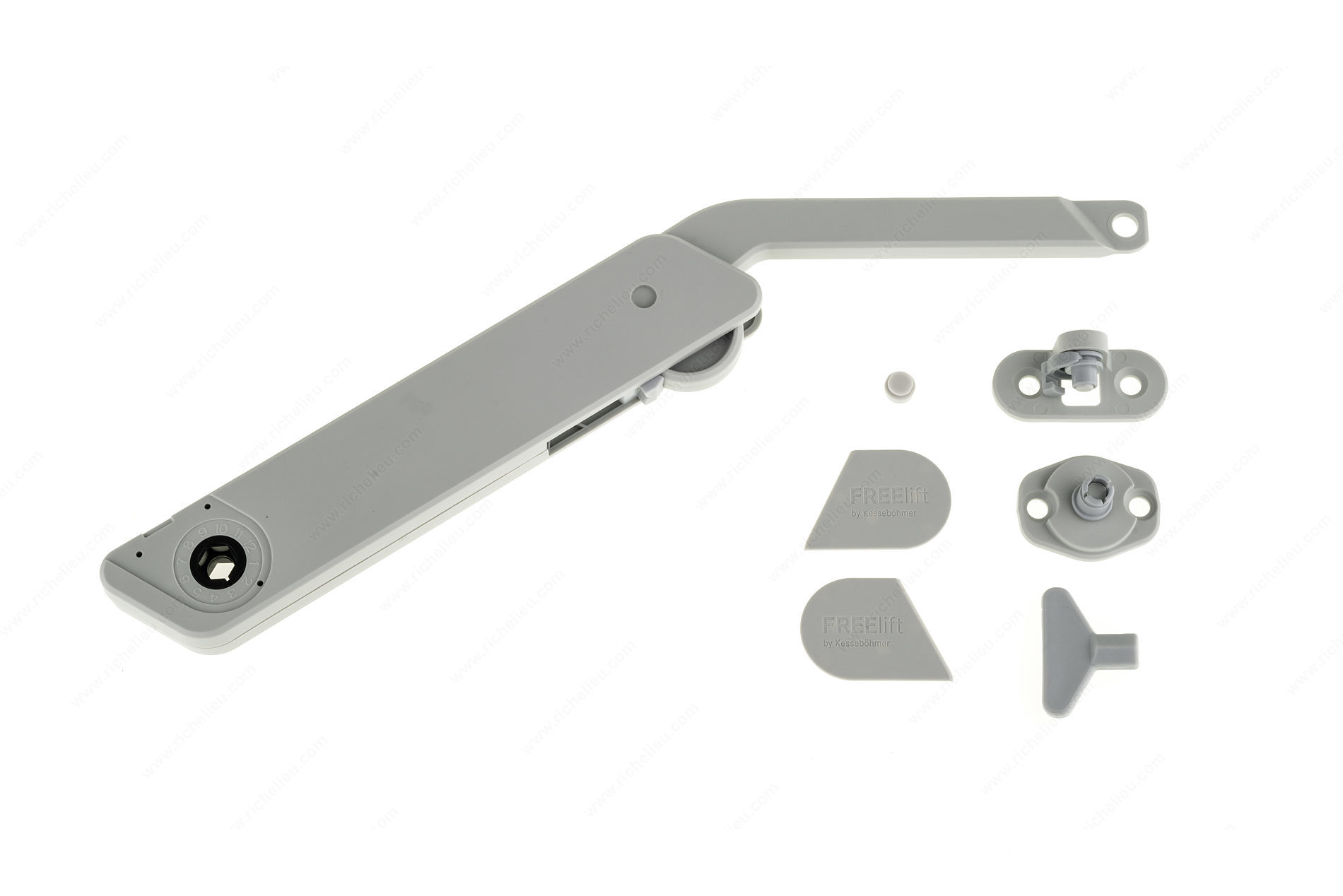 Richelieu 272035100 FREElight Opening System offers a seamless solution for lifting and lowering front panels on wall units and other high cabinetry, making it an ideal choice for various applications in both kitchens and living rooms. With the capacity to support panels weighing up to 10.5 kg and measuring up to 600 mm in height, this versatile lifter ensures that functionality and ease of use are at the forefront of your design. Designed for compatibility with widely available flaps and door hinges, the FREElight integrates effortlessly into your existing setup. One of its standout features is the soft-close mechanism, which provides a gentle and controlled opening and closing experience, enhancing the overall user experience while minimizing wear on cabinetry. This system is specifically tailored for wood doors, with a door height range of 10 7/8 to 23 5/8 inches, and comes in a sleek gray finish that complements a variety of decor styles. The lift-up opening type adds convenience, allowing for quick access to stored items. Whether you're a building professional or a knowledgeable homeowner, the Richelieu 272035100 FREElight Opening System is a practical and stylish addition to elevate your cabinetry solutions.