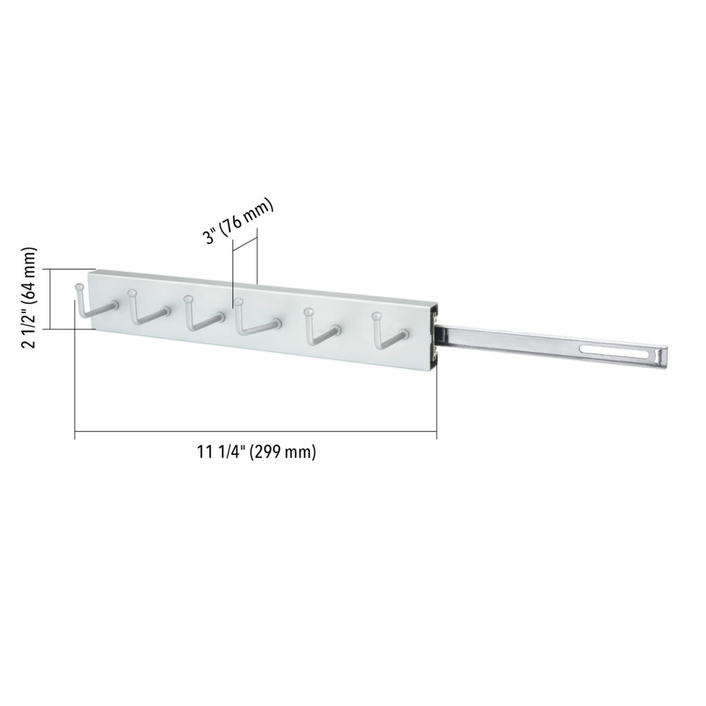 Richelieu 29212174 Sliding Square Belt Rack is the perfect solution for organizing your wardrobe and keeping your belts neatly displayed. Designed with functionality and style in mind, this decorative rack features a sleek matte chrome finish that enhances any storage space. With six sturdy hooks, it allows for easy access and storage of multiple belts, ensuring that your favorite accessories are always within reach. The rack requires a minimum interior depth of 12 inches for optimal installation, making it a versatile choice for various closet configurations. Measuring 11 1/4 inches in depth, 2 1/2 inches in height, and 3 inches in width, it fits comfortably within standard wardrobe spaces without overwhelming them. Crafted from durable metal, this belt support is built to withstand daily use while maintaining its attractive appearance. Whether you’re a building professional looking to enhance a client’s wardrobe or a knowledgeable homeowner seeking to streamline your storage solutions, the Richelieu Sliding Square Belt Rack is an ideal addition. It ships conveniently via UPS, ensuring a hassle-free delivery experience. Elevate your organization game and enjoy a clutter-free closet with this stylish and practical belt rack.