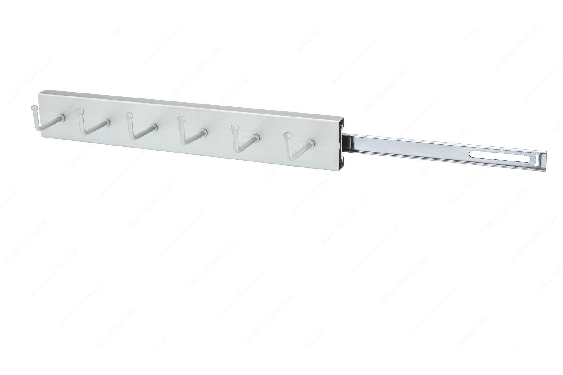 Richelieu 29314174 Sliding Square Belt Rack offers an elegant and efficient storage solution for organizing belts in your wardrobe. Crafted from durable metal and finished in a sleek matte chrome, this belt rack not only adds functionality but also enhances the visual appeal of your space. With an interior depth requirement of 14 inches, this rack is designed to fit seamlessly into your existing wardrobe configuration. Measuring 13 1/4 inches in depth, 2 1/2 inches in height, and 3 inches in width, it provides an optimal balance between compact design and storage capacity. The sliding mechanism allows for easy access to your belts, ensuring that you can quickly find the perfect accessory to complete your outfit. Featuring six hooks, the Richelieu Sliding Square Belt Rack accommodates multiple belts while keeping them neatly organized and tangle-free. Its thoughtful design not only maximizes space but also showcases your collection beautifully. Ideal for building professionals and discerning homeowners alike, this product is a must-have for any organized dressing space. Plus, it ships conveniently via UPS, making it a hassle-free addition to your home.