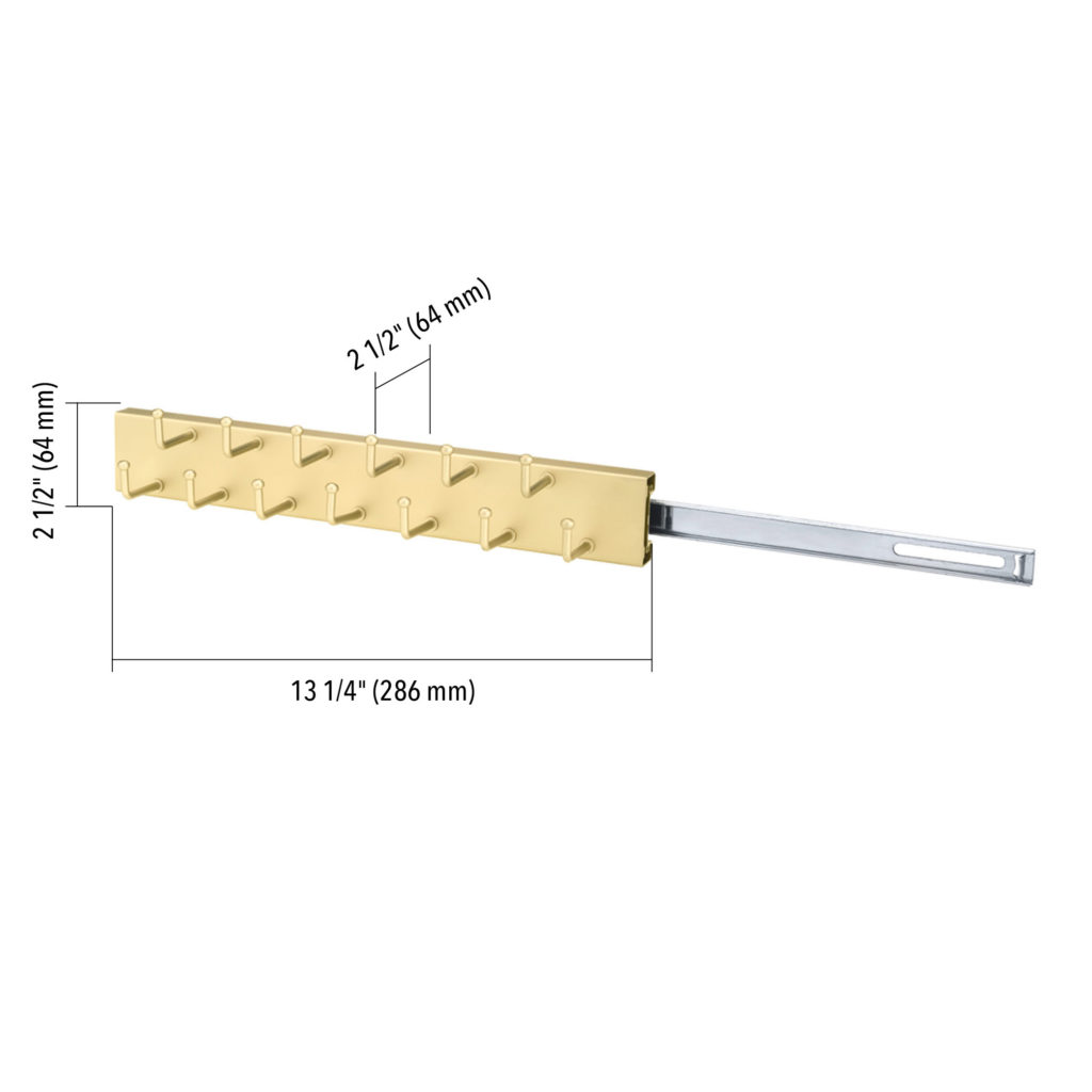 Richelieu 29714160 Decorative Square Tie Rack is the perfect solution for organizing your wardrobe while adding a touch of elegance. Designed for functionality and style, this tie rack features a matte brass finish that not only enhances the aesthetic of your space but also ensures durability. With a compact size of 13 1/4 inches in depth, 2 1/2 inches in height, and 2 1/2 inches in width, it fits seamlessly into various closet configurations. Equipped with 13 hooks, this decorative tie rack allows you to neatly store your ties, ensuring they remain untangled and easily accessible. The required interior depth for installation is 14 inches, making it suitable for most storage areas. Crafted from high-quality metal, it promises longevity while maintaining its sleek appearance. Whether you're a building professional looking for reliable storage solutions or a knowledgeable homeowner seeking to enhance your wardrobe organization, the Richelieu Decorative Square Tie Rack is an invaluable addition. It ships conveniently via UPS, making it easy to incorporate this stylish accessory into your space. Elevate your storage game with this practical and attractive tie support, designed to keep your ties organized and ready for any occasion.