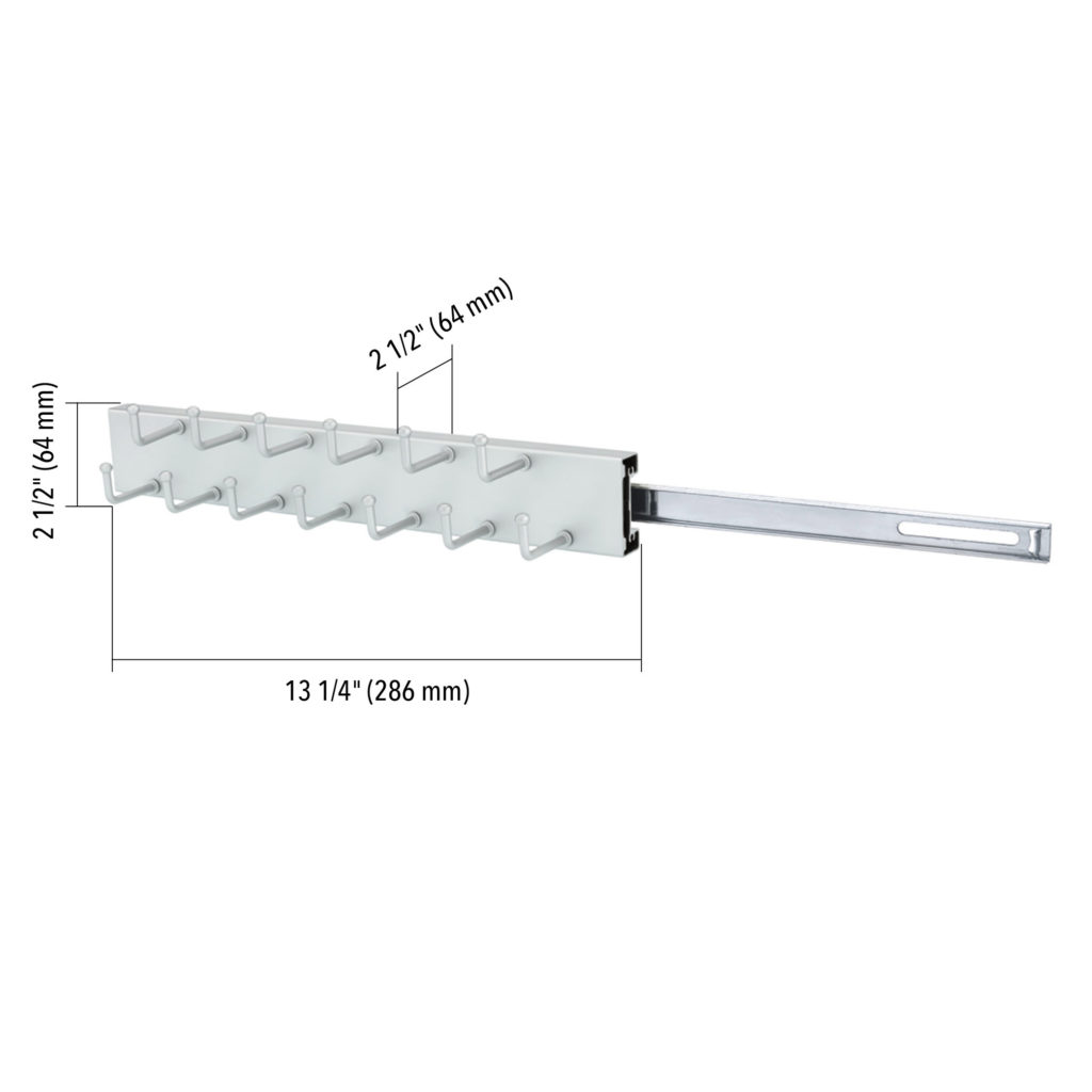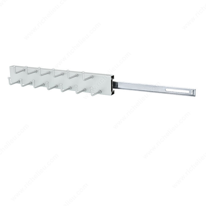 Richelieu 29714174 Decorative Square Tie Rack offers an elegant solution to keep your ties organized and easily accessible. This stylish accessory is perfect for any wardrobe, combining functionality with a sleek design. Crafted from durable metal with a sophisticated matte chrome finish, it not only serves its purpose but enhances the aesthetic of your space. Measuring 13 1/4 inches in depth, 2 1/2 inches in height, and 2 1/2 inches in width, this tie rack is designed to fit seamlessly into your closet. It requires an interior depth of just 14 inches, ensuring compatibility with most storage areas. Featuring 13 hooks, the rack provides ample space for your collection, allowing you to display your ties neatly and prevent wrinkles. The Richelieu Decorative Square Tie Rack is a versatile addition to your organization efforts, bringing order to your accessories while keeping them within easy reach. Ideal for both personal and professional use, it ships conveniently via UPS, making it a practical choice for anyone looking to enhance their wardrobe storage. Say goodbye to clutter and embrace a more organized lifestyle with this stylish tie rack.