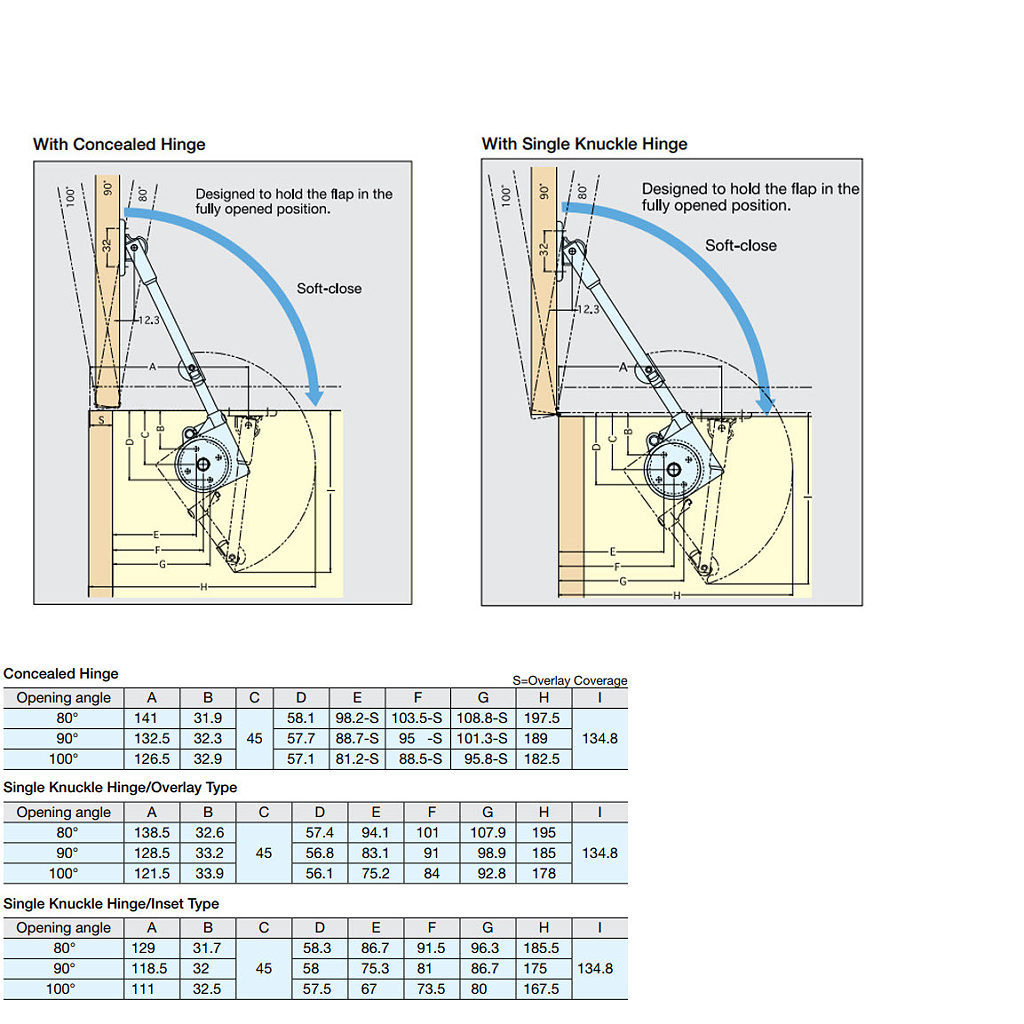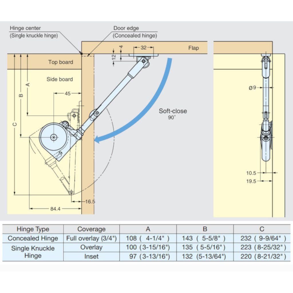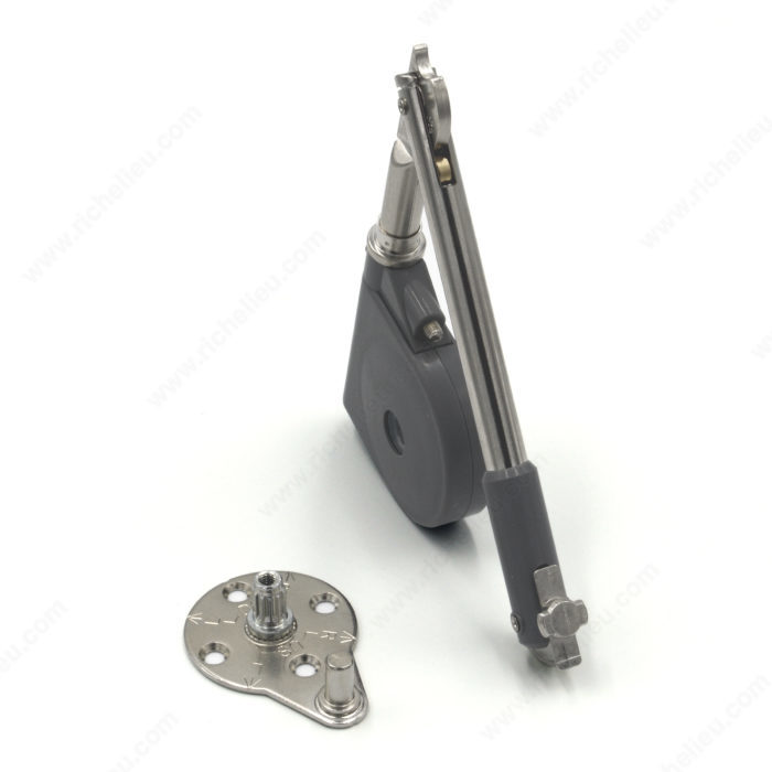 Richelieu 301100 90 Upward Opening Flap is the ideal solution for maximizing space and functionality in cabinetry. Designed to open with ease, this flap is perfect for kitchens, living areas, or any environment where accessibility and style are paramount. The innovative design ensures a smooth upward motion, allowing for convenient access to stored items while maintaining a sleek appearance. This flap is engineered with torque calculations that range from 40 to 70 kg/cm (35 to 60 lb/in) per piece, and up to 80 to 140 kg/cm (70 to 120 lb/in) per pair. This impressive torque capacity guarantees stability, making it suitable for various door heights and weights. Constructed from durable plastic and metal, the Richelieu 301100 offers both strength and longevity, available in a contemporary white or gray finish that seamlessly integrates into any decor. With the added convenience of shipping via UPS, this product is readily accessible for building professionals and discerning homeowners alike. Elevate your cabinetry with the Richelieu 301100 90 Upward Opening Flap, where functionality meets modern design, ensuring your spaces are both stylish and practical.