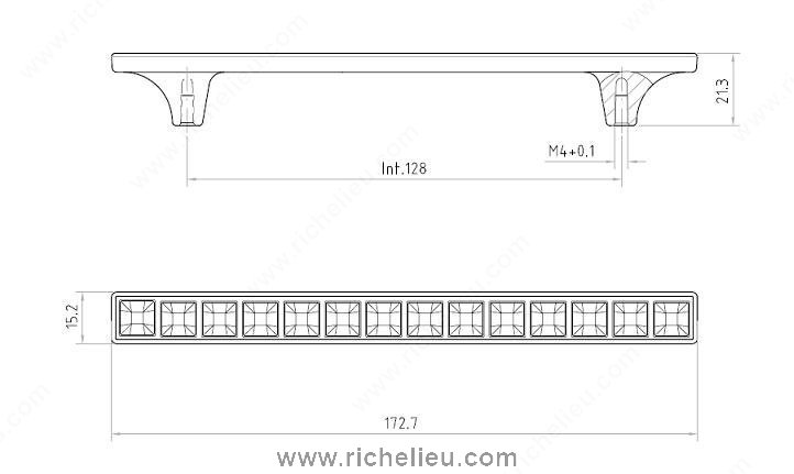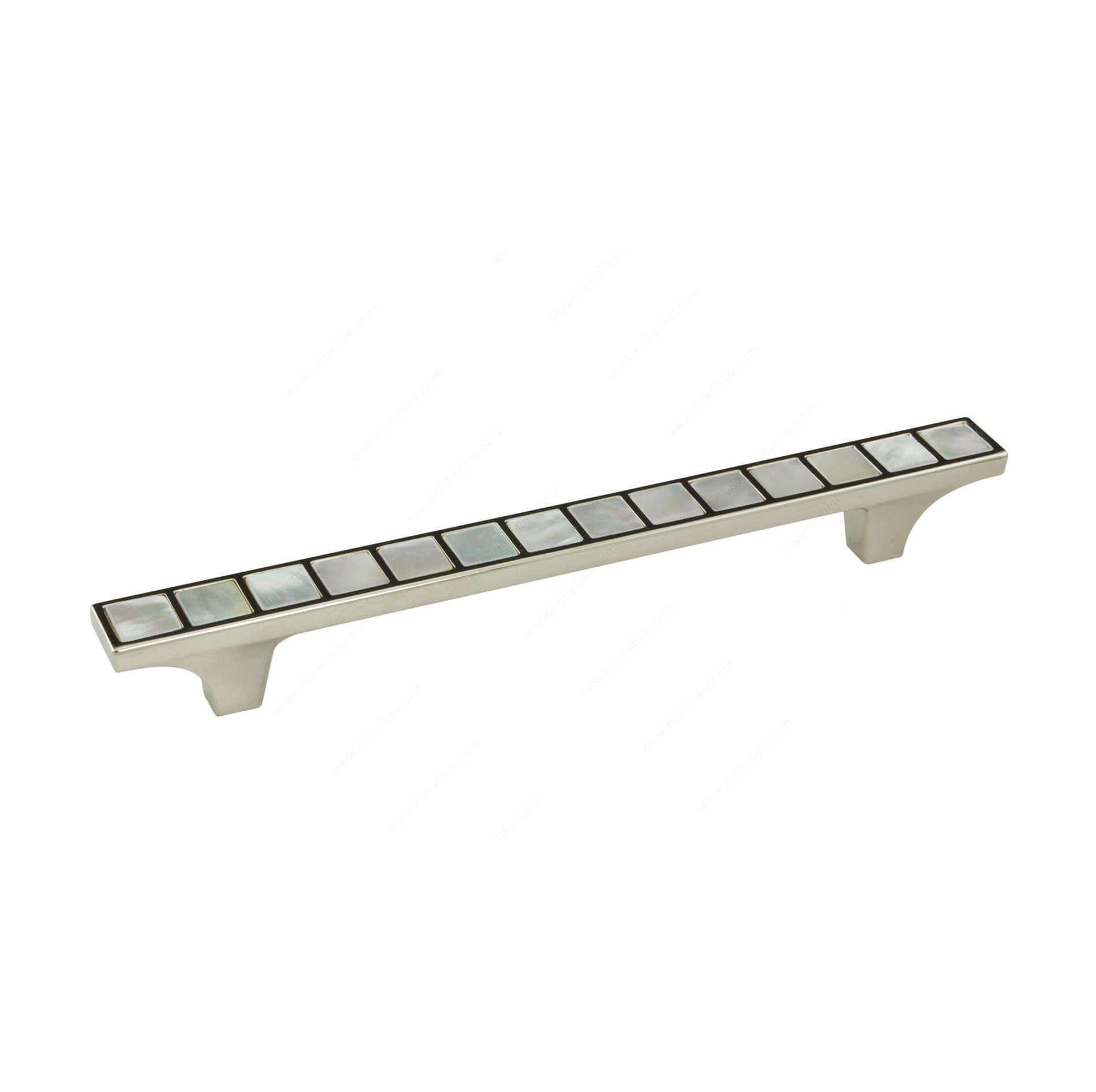 Richelieu 3024128180PEA Precious Materials Collection Pull is an exquisite addition to any furniture piece, showcasing a captivating design that enhances both modern and classic interiors. This luxurious rectangular pull features a row of embedded precious stones, delivering an opulent touch that transforms ordinary cabinetry into extraordinary focal points. With an overall length of 6 13/16 inches and a center-to-center measurement of 5 1/32 inches, this pull is designed for ease of installation and functionality. Crafted from pearl and zamak, it combines durability with elegance, while the polished nickel and pearl finish exudes sophistication. The subtle gray and chrome color palette complements a variety of design schemes, making it a versatile choice for discerning homeowners and professionals alike. Measuring 19/32 inches in width and projecting 13/16 inches, this pull is both practical and stylish. It comes with M4 screws included for hassle-free installation. The Richelieu 3024128180PEA is not just a functional hardware piece; it's a statement of luxury, ideal for enhancing cabinetry in kitchens, bathrooms, and living spaces. Embrace the elegance of the Precious Materials Collection and elevate your design with this stunning pull.