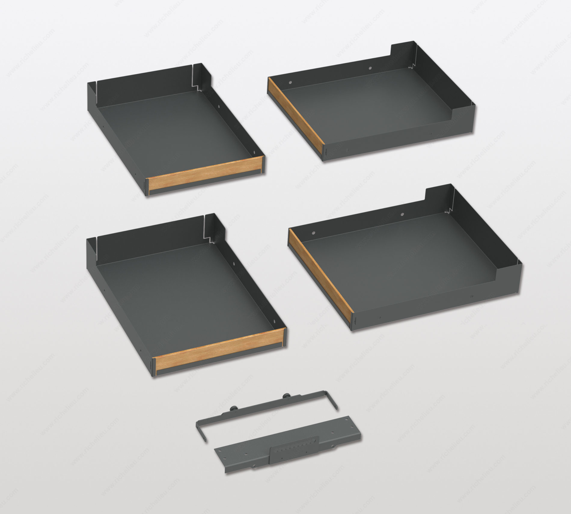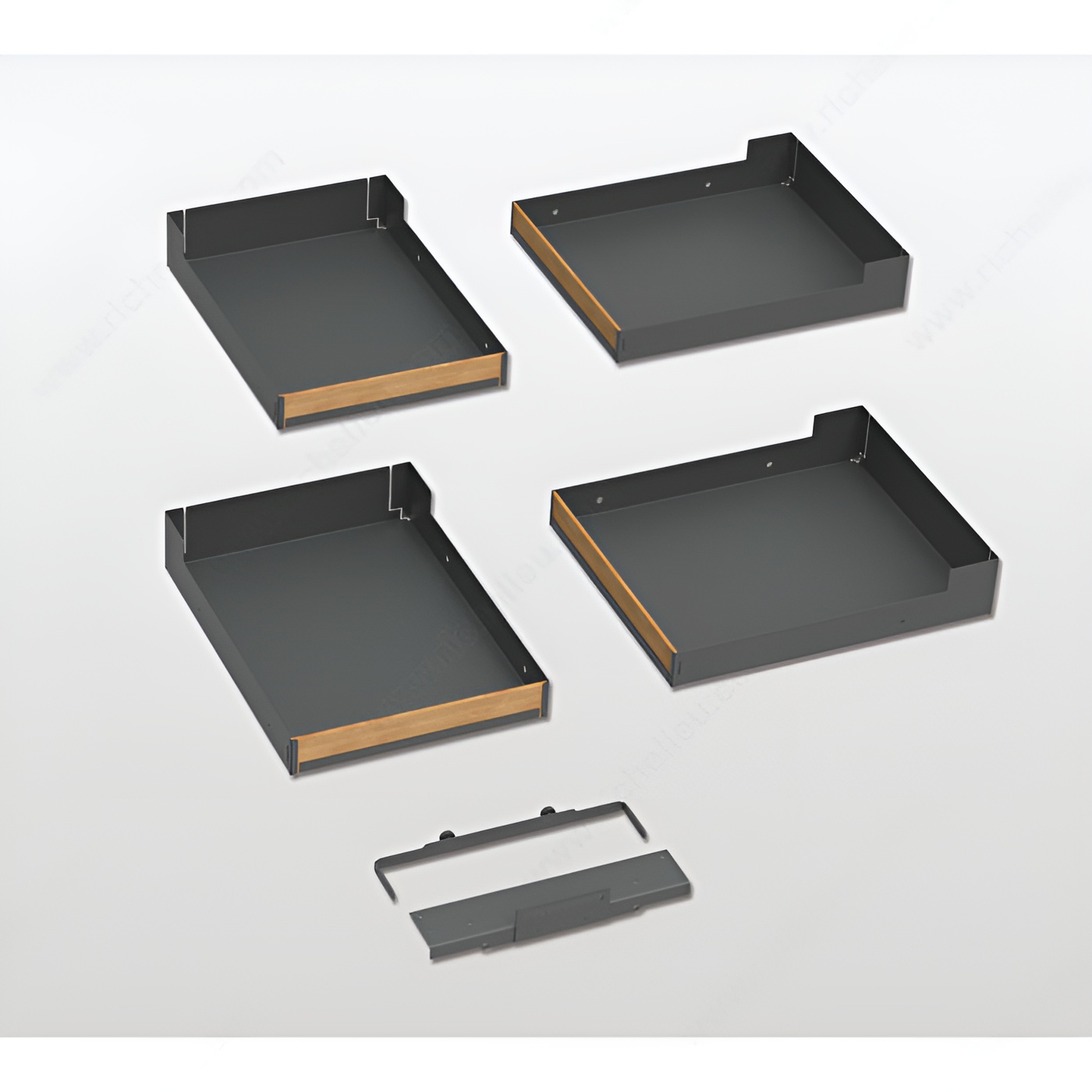 Richelieu 31008906 Shelves for Magic Corner II Fioro offer an innovative solution for optimizing storage in corner cabinets. Designed with a sleek dark gray finish complemented by an oak track, these shelves not only enhance the aesthetic of your kitchen but also provide practical utility. Each shelf is equipped with anti-slip mats to ensure your items stay securely in place, reducing the risk of accidental spills or falls. With a required interior depth of just 3 3/4 inches and a minimum width of 17 1/2 inches, these shelves are versatile enough to fit a variety of corner cabinet configurations. The product dimensions measure 19 5/8 inches in depth, 11 3/8 inches in width, and 3 17/32 inches in height, making them a perfect fit for maximizing space without compromising on style. Constructed from durable metal, the Richelieu shelves are built to withstand daily use while maintaining their elegant appearance. Ideal for food storage and general organization, these shelves are a reliable choice for anyone looking to enhance their kitchen storage solutions. Plus, they can conveniently ship via UPS, ensuring a seamless purchasing experience. Upgrade your corner cabinets with the Richelieu 31008906 Shelves and enjoy both form and function in your kitchen design.