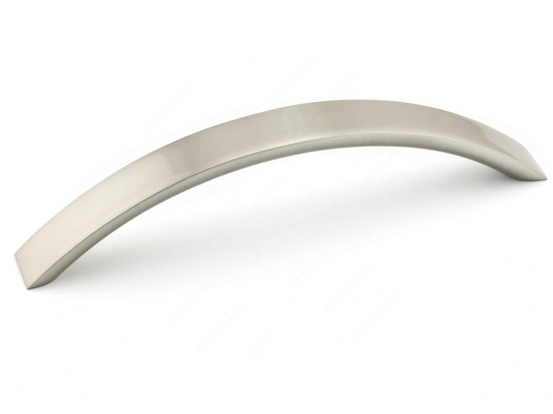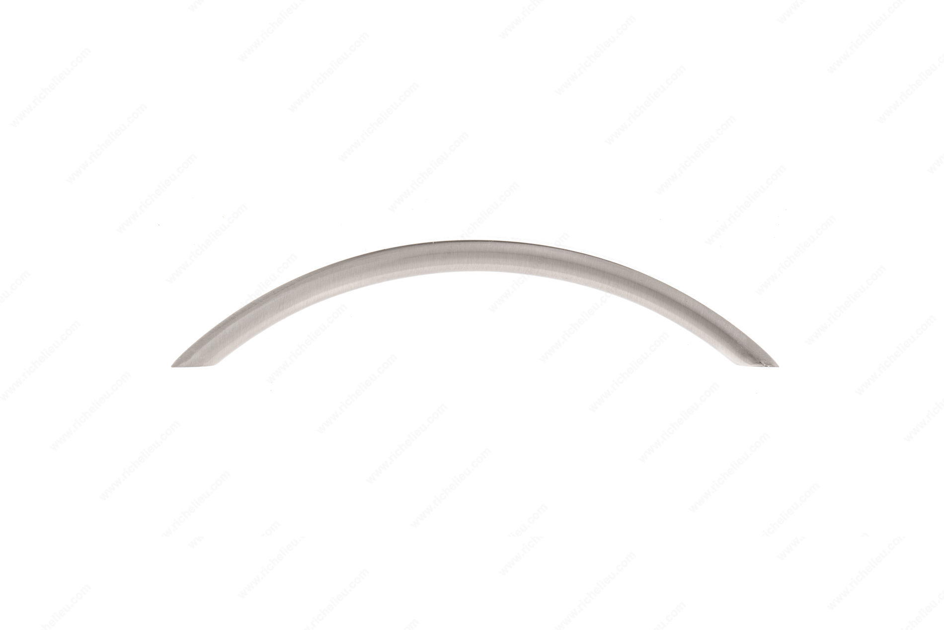 Richelieu 3151128195 Modern Metal Pull - 3151 is an elegant solution for enhancing your cabinetry and furniture with a contemporary touch. The arched design features a smooth surface that contrasts beautifully with its curved underside, offering both style and functionality. Crafted from durable Zamak, this pull is designed to withstand daily use while adding a chic aesthetic to any space. With an overall length of 5 5/8 inches and a center-to-center measurement of 5 1/32 inches, this pull fits seamlessly into various applications. The brushed nickel finish, designated as finish number 195, provides a sophisticated gray and chrome appearance that complements modern decor. Its dimensions include a projection of 1 3/16 inches and a width of 19/32 inches, ensuring it is easy to grip. Installation is straightforward, requiring 8/32 inch screws, which are not included. The Richelieu 3151128195 pull can be shipped via UPS, making it a convenient choice for professionals and DIY enthusiasts alike. Elevate your cabinetry with this stylish and practical hardware that embodies contemporary design and quality craftsmanship.