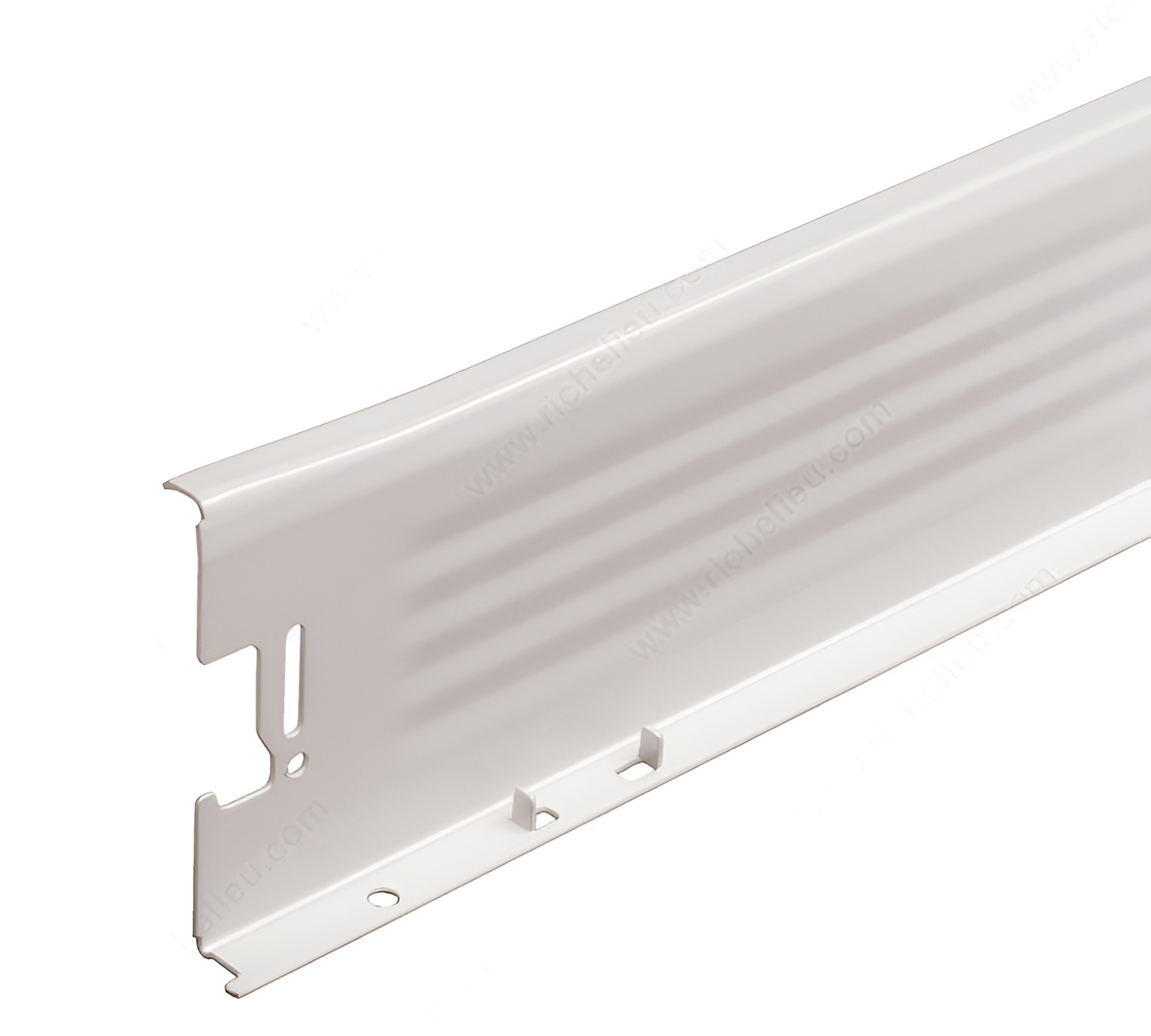 Richelieu 320N5500C1530 METABOX Series 320N-C15 Single Extension Drawer Sides US offers a seamless solution for general storage needs. Designed for easy assembly, this drawer side features a user-friendly positioning guide for system 32, allowing for tool-free installation. The assembly requires drilling holes at the back of the drawer, ensuring a sturdy and reliable setup. With a load capacity of 30 kg (66.13 lb), these drawer sides are built to handle everyday storage tasks efficiently. The standard panels and single drawer panel wall configuration deliver a clean and functional design, suitable for various applications. The nylon slides ensure smooth operation, while the partial extension design allows for easy access to contents within the drawer. Measuring 21 5/8 inches in length and 2 1/8 inches in height, the METABOX drawer sides are finished in white, providing a contemporary look that integrates well with modern cabinetry. The side-mounted slide extension mechanism enhances stability and performance, making it a reliable choice for both building professionals and discerning homeowners. Choose Richelieu's METABOX Series for a practical, efficient, and stylish solution to your drawer needs.