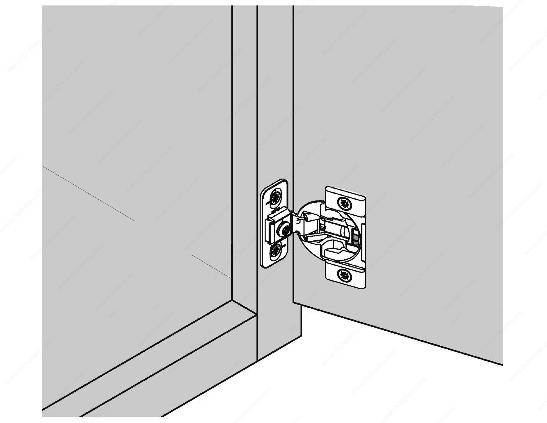 Richelieu 38B358BF22180 Compact Blumotion 38B Hinge 107 InstructionsRichelieu 38B358BF22180 COMPACT BLUMOTION 38B Hinge 107 is expertly crafted for framed cabinets, offering both functionality and a seamless aesthetic. This innovative hinge features an integrated soft-closing mechanism that ensures doors close quietly, enhancing the overall user experience. The BLUMOTION function can be easily deactivated, making it suitable for smaller or lighter doors while maintaining the same high-quality movement that users expect. Designed for full overlay applications, the hinge accommodates a maximum door thickness of 3/4 inch and supports a hinge opening angle of +107°. Its nickel finish adds a sleek touch, ensuring durability while complementing various cabinetry styles. The COMPACT BLUMOTION hinge utilizes a face mount installation method and requires knock-in fixing with an insertion ram, simplifying the installation process. With a minimum overlay of 1 3/8 inches and a milling diameter of 7/16 inches, this hinge is a versatile choice for various cabinet designs. Please note that screws or nails are not included with the product. Richelieu's commitment to quality and innovation shines through in this hinge, making it an ideal solution for builders and homeowners seeking reliable, professional-grade hardware.