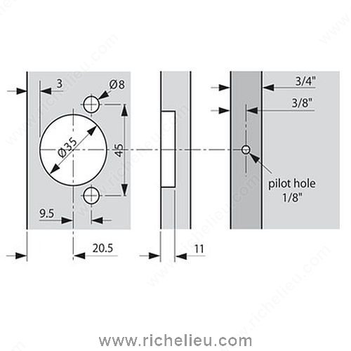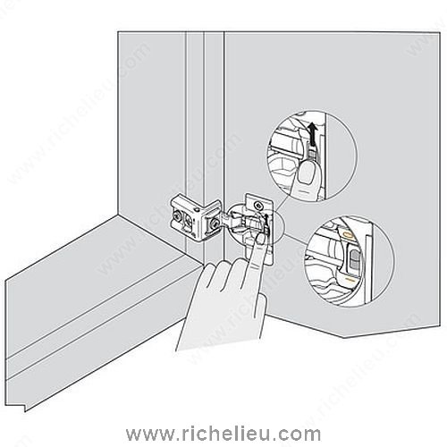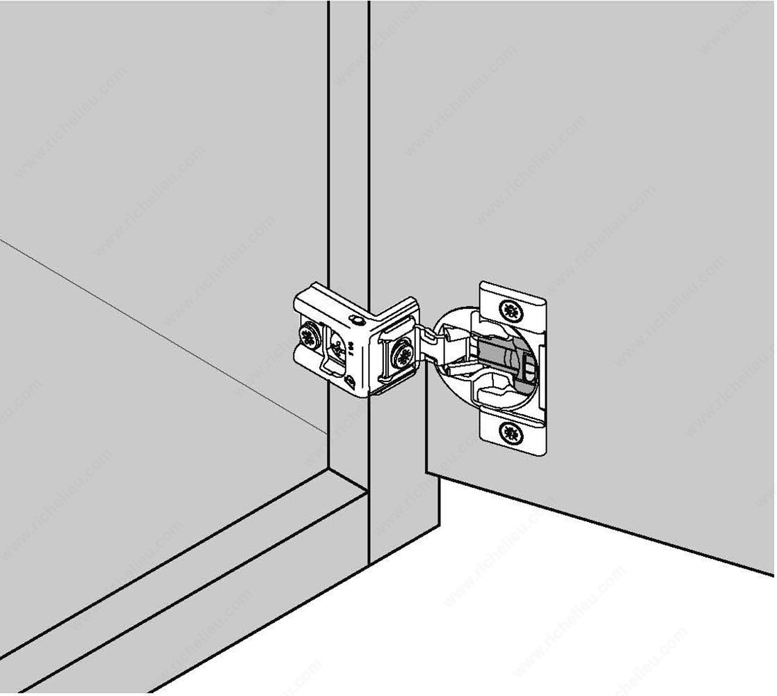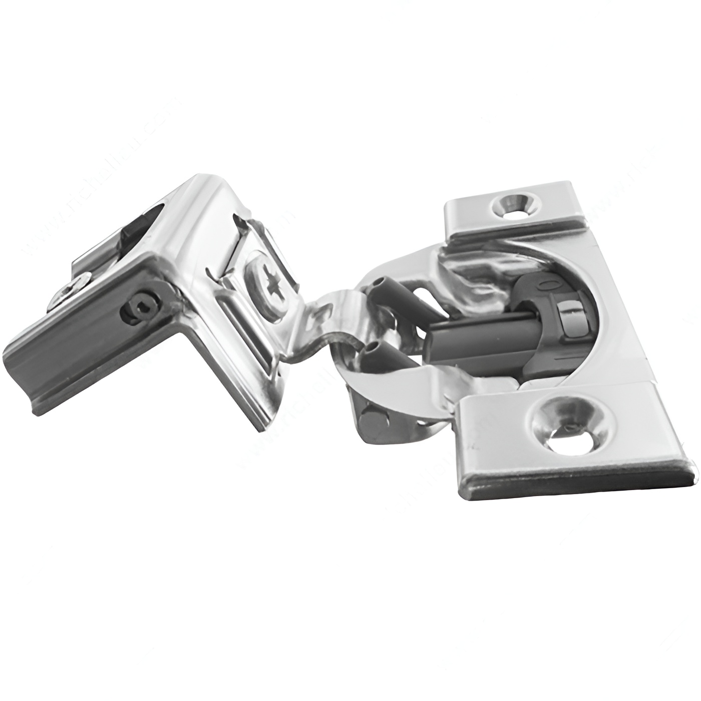 Richelieu 38C358B20180 COMPACT BLUMOTION Hinge 38C 107 is expertly crafted for framed cabinets, ensuring a seamless and professional finish. This innovative hinge features an integrated soft-closing mechanism that guarantees doors close quietly, enhancing the overall user experience. The BLUMOTION functionality can be conveniently deactivated, making it ideal for smaller or lighter doors that require the same high-quality movement without the soft-close feature. Designed for full overlay applications, this hinge offers a generous opening angle of +107°, providing excellent access to cabinet interiors. The wraparound mounting type simplifies installation, while the nickel finish adds an elegant touch suitable for modern and traditional cabinetry alike. The fixing type is a knock-in with insertion ram only, promoting quick and secure attachment. With a 1 1/4 inch overlay, the COMPACT BLUMOTION hinge is compatible with various cabinet configurations, ensuring versatility across different projects. Please note that screws or nails are not included with the product, allowing you to choose the best fastening solution for your specific needs. Ship via UPS for convenience, making this hinge an excellent choice for both building professionals and knowledgeable homeowners looking to elevate their cabinetry.