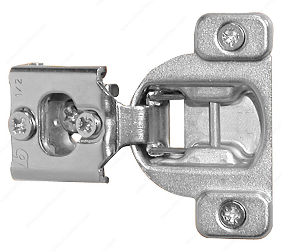 Richelieu 38N35506180 COMPACT 38N Hinge 105 is an ideal solution for face frame cabinets, offering superior functionality in a compact design. These concealed hinges are engineered for both small and large overlays, making them versatile enough for a variety of applications. With an impressive hinge opening angle of +105°, they provide ample access to cabinet interiors, enhancing ease of use. Designed for cabinets with a maximum thickness of 3/4 inch, this hinge accommodates standard doors seamlessly. The installation is straightforward, featuring a screw-on fixing type along with a wrap-around mount for added stability. The hinge includes a plate, simplifying the setup process. Constructed from durable steel, the spring-closing mechanism ensures a smooth operation, maintaining the integrity of your cabinetry. The milling depth of 7/16 inch and diameter of 1 3/8 inch allows for precise fitting, contributing to a streamlined aesthetic. Richelieu’s commitment to quality is evident in the 38N35506180 COMPACT hinge, making it a reliable choice for building professionals and discerning homeowners alike. Each unit is packaged individually, and while screws are not included, the hinge is ready for efficient installation. Elevate your cabinetry projects with this premium hinge solution.