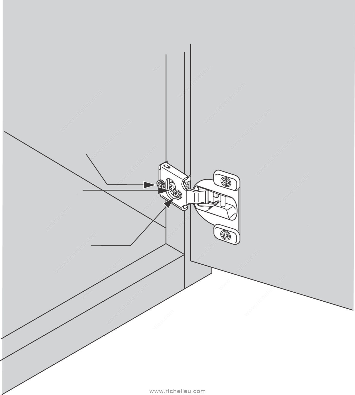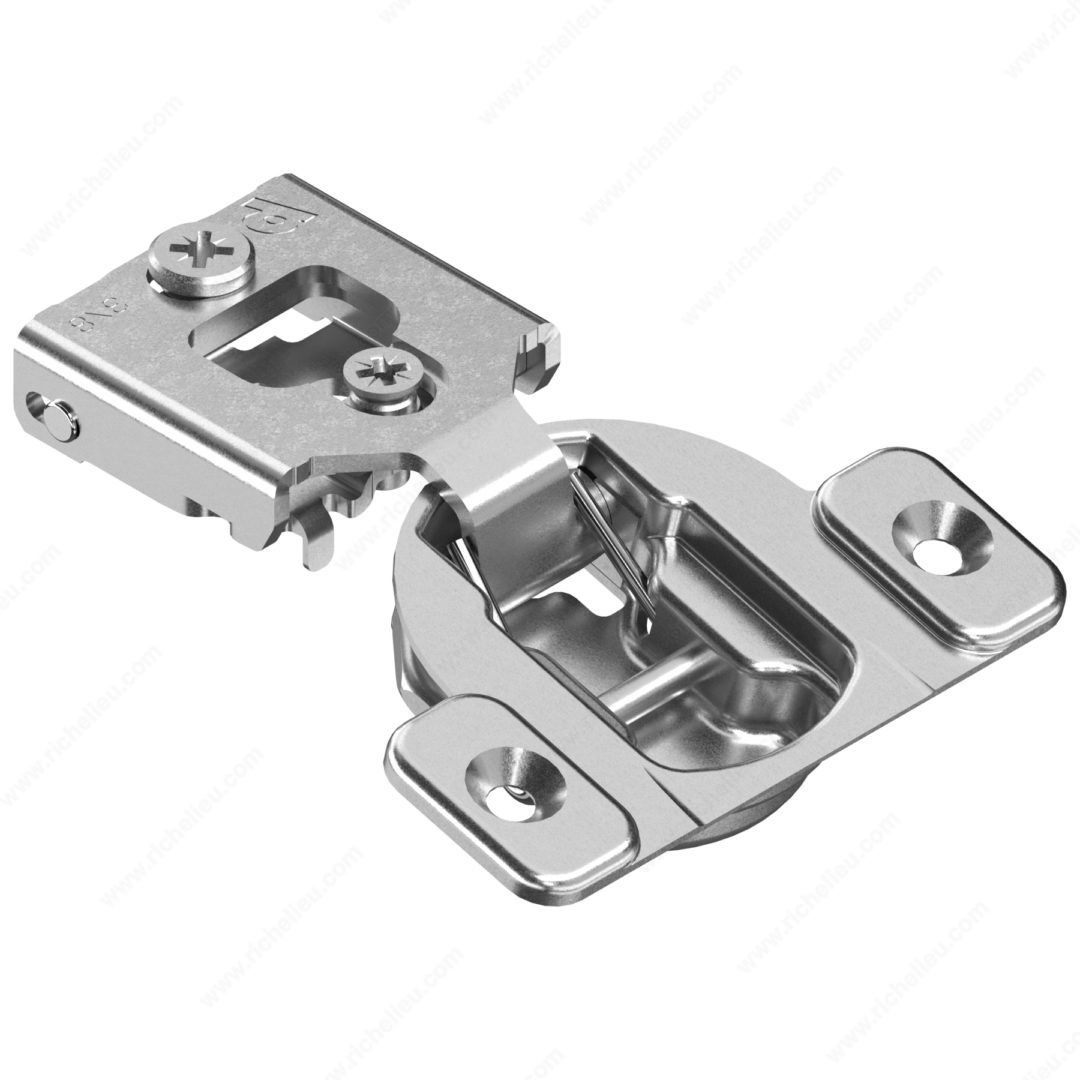 Richelieu 38N35806180 COMPACT 38N Hinge 105 offers a sophisticated solution for concealed hinge requirements in face frame cabinets. Designed with versatility in mind, these hinges are easily adjustable in side, height, and depth dimensions, accommodating various cabinet styles and door overlays, including both small and large options. Crafted from durable steel, the COMPACT hinge is built to last, ensuring reliable performance in standard door applications. With a hinge opening angle of +105°, it provides ample accessibility for cabinet interiors. This hinge is suitable for cabinet and door thicknesses up to 3/4 inch, making it a practical choice for a range of installations. The innovative wrap-around mounting type facilitates straightforward installation, while the included plate enhances stability. Although screws and nails are not included, the hinge employs a knock-in fixing type with an insertion ram for secure placement. Whether you're a building professional or a knowledgeable homeowner, Richelieu's COMPACT hinge simplifies cabinet assembly without compromising style or function. Its efficient design and compatibility with various face frame configurations make it an essential component for any cabinetry project. Enjoy ease of use and reliable performance with Richelieu’s 38N35806180 COMPACT hinge.