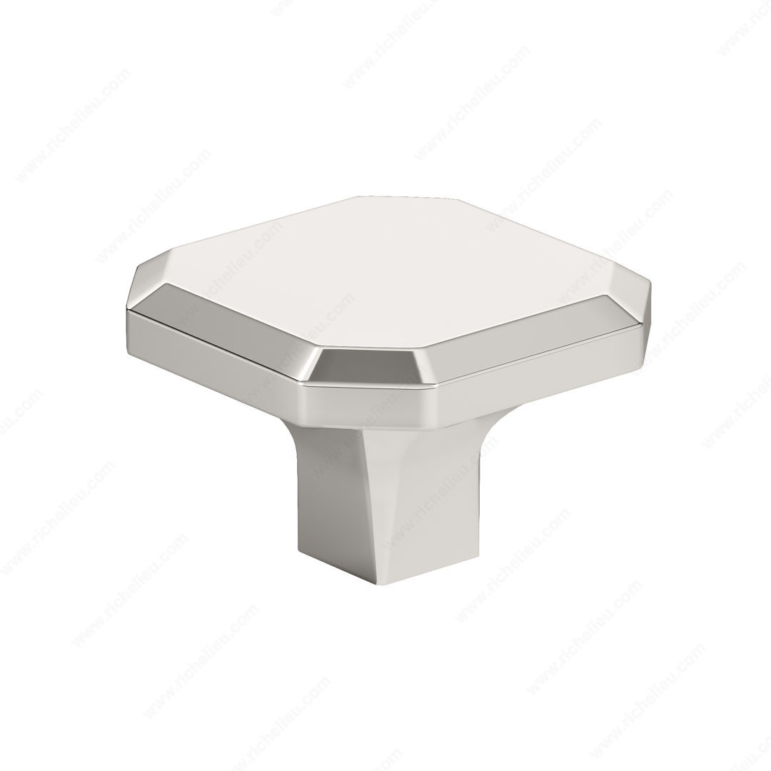 Richelieu 392134180 Transitional Metal Knob - 392 is a striking addition to any furniture or cabinetry, designed to make a bold statement. This stylish knob features a sleek beveled edge that enhances its modern appeal while seamlessly fitting into transitional designs. Crafted from durable zamak, it offers both strength and elegance, ensuring it withstands daily use while maintaining its polished nickel finish. Measuring 1 11/32 inches in both length and width, with a projection of 25/32 inches, this knob is perfectly sized to provide a comfortable grip. The eye-catching gray and chrome color combination adds a touch of sophistication, making it an ideal choice for contemporary spaces. This knob is part of the comprehensive 3921 collection, allowing for cohesive design across various applications. The knob is designed for easy installation, compatible with M4 screws, making it suitable for both professional builders and DIY enthusiasts. Plus, it ships conveniently via UPS, ensuring you receive it promptly for your next project. Elevate your interiors with the Richelieu 392134180, where style meets functionality in perfect harmony.