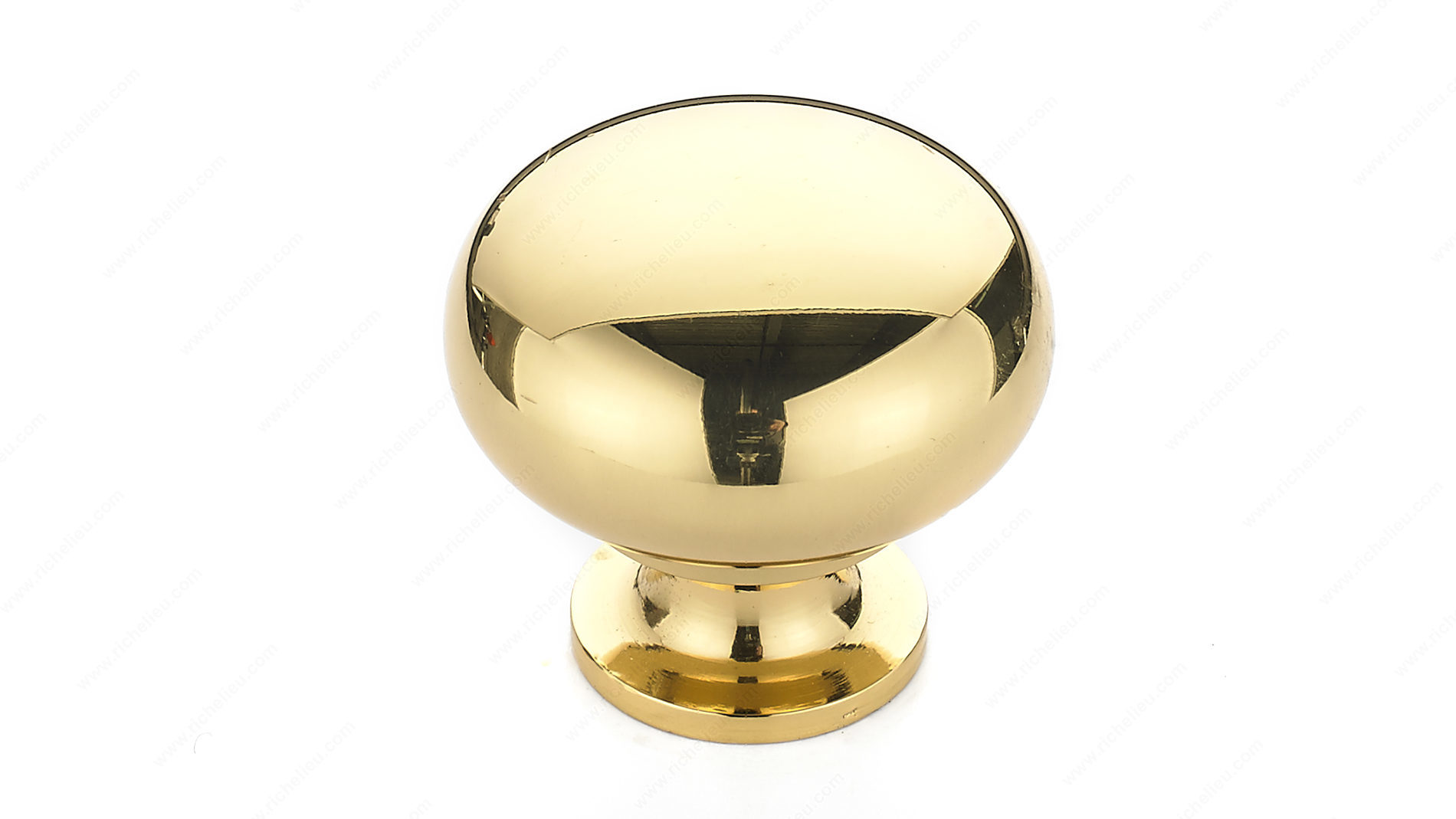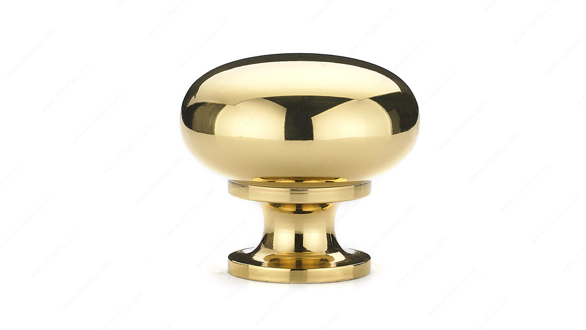 Richelieu 3923130 Traditional Brass Knob - 3923 offers a timeless addition to any furniture or décor project. This classic mushroom-shaped knob features a smooth brass finish that enhances its elegant design, making it suitable for a variety of applications. With an overall diameter of 1 1/4 inches and a projection of 1 3/16 inches, this knob provides a comfortable grip while maintaining a low-profile aesthetic. Crafted from high-quality brass, the Richelieu 3923130 reflects durability and sophistication. The warm yellow and brass tones seamlessly blend with both traditional and modern styles, ensuring it complements your existing furnishings beautifully. This utility-style knob is perfect for cabinets, drawers, or any furniture piece that requires a reliable and stylish pull. Each knob is sold individually, allowing for flexibility in your design choices. While the necessary screws (8/32 in) are not included, they can easily be sourced to complete your installation. Designed for easy shipping via UPS, this product is both practical and attractive, making it an ideal choice for builders, designers, and homeowners alike. Elevate your space with the charm and functionality of the Richelieu 3923130 Traditional Brass Knob.