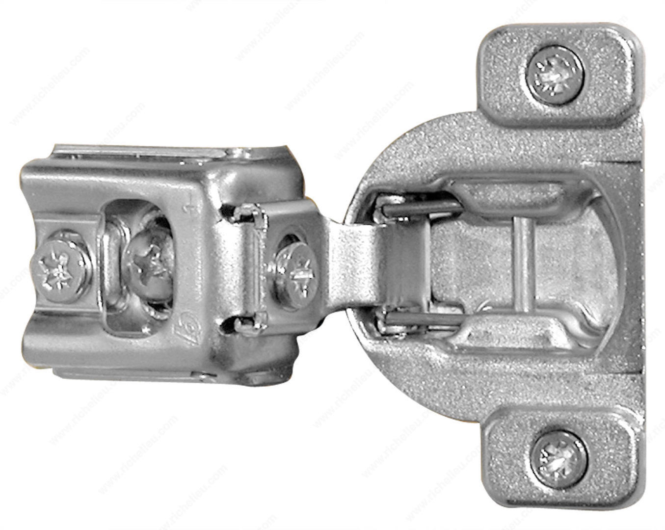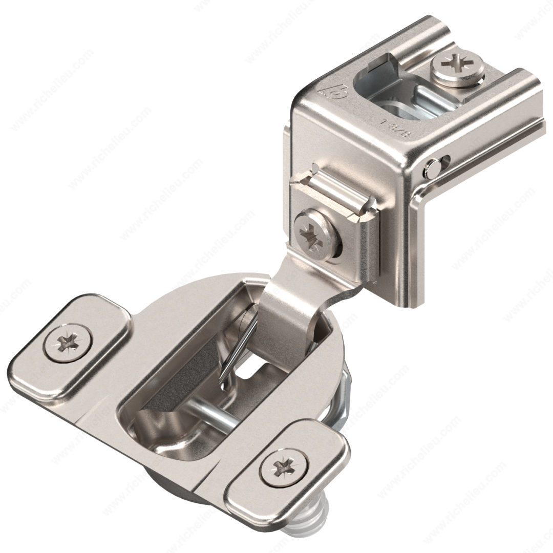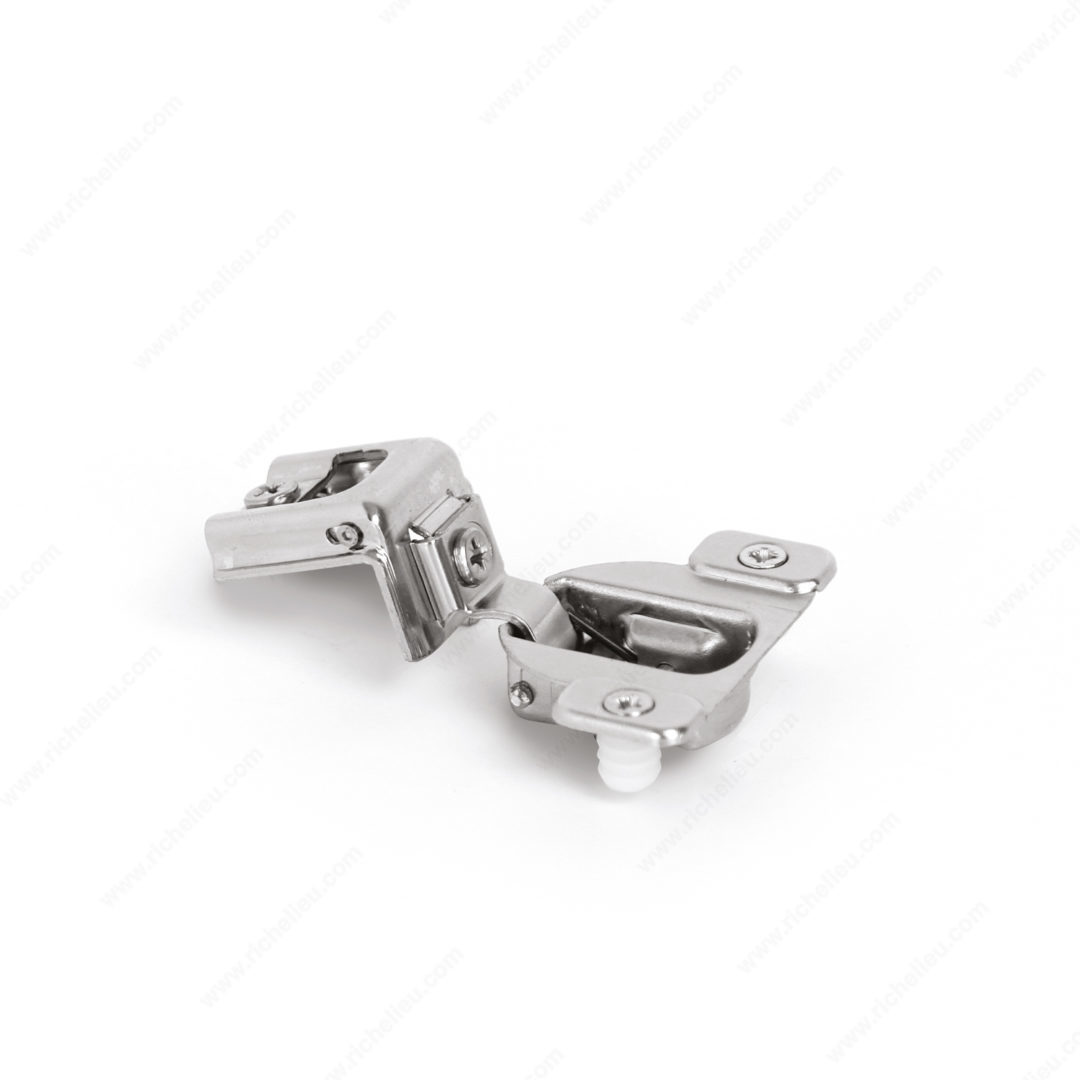 Richelieu 39C35822180 COMPACT 39C Hinge 110 offers a reliable solution for face frame cabinets, combining versatility with ease of use. These concealed hinges are designed for both small and large overlays, making them an excellent choice for various cabinet applications. With adjustable dimensions in side, height, and depth, users can achieve precise alignment and optimal functionality. Constructed from durable steel and finished in sleek nickel, this hinge supports a maximum cabinet and door thickness of 3/4 inch, ensuring compatibility with a wide range of cabinetry. The hinge opening angle of +110° facilitates effortless access, enhancing user experience. Featuring a spring-closing mechanism, the hinge ensures doors close smoothly and securely, providing peace of mind. Installation is simple with a wraparound type mounting and knock-in fixing method, although screws or nails are not included. The required milling depth is 1/2 inch with a milling diameter of 1 3/8 inches, allowing for seamless integration into your cabinetry. Each hinge is sold per unit, making it easy to order the exact quantity needed for your project. Choose the Richelieu COMPACT hinge for an efficient and stylish addition to your cabinetry that meets both practical and aesthetic needs.
